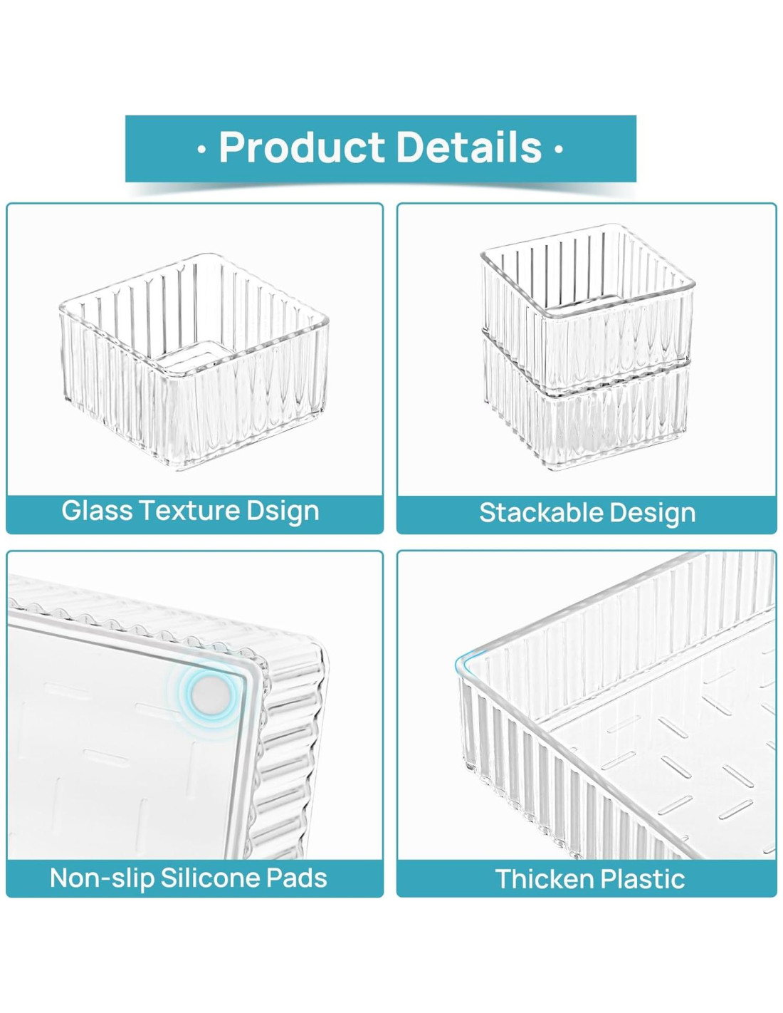 - Organizador de Cajones Crystal Clear Hecho de plástico duradero y transparente, el organizador de cajones se ve hermoso en el cajón, son decorativos para la organización y almacenamiento del hogar, no más desorden en el baño, tocador, oficina.