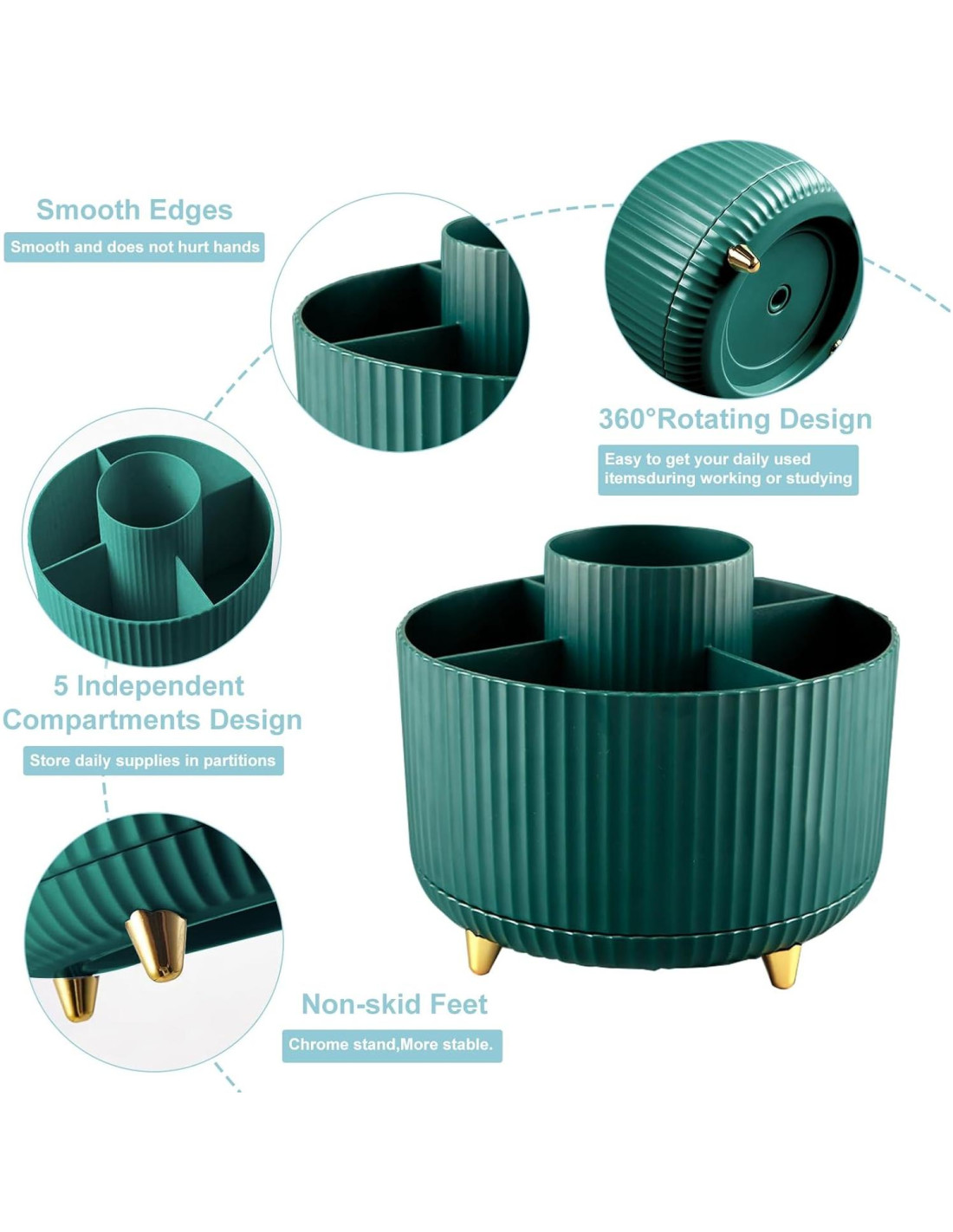 - [Robusto y duradero] Este organizador de bolígrafos está hecho de material ABS ecológico y no tóxico que no causará ningún daño. El soporte chapado en oro con base giratoria de 360 es muy estable y no se inclina para un uso a largo plazo. La superficie extremadamente suave y los bordes redondeados no dañarán tus cosas ni a ti mismo.