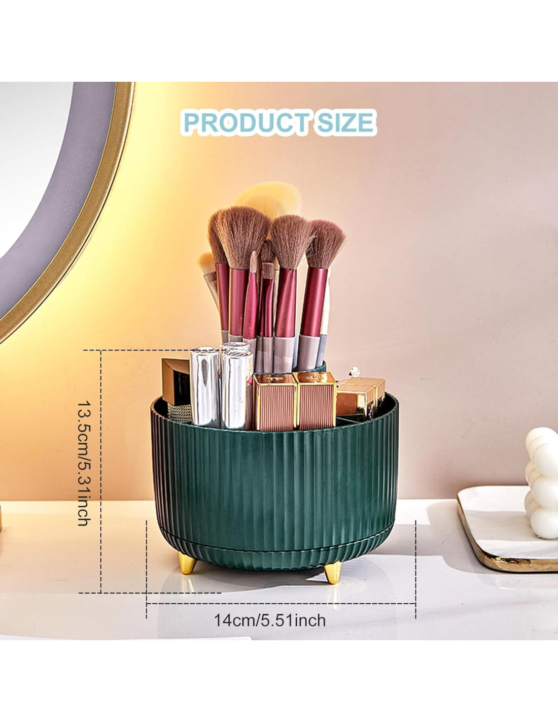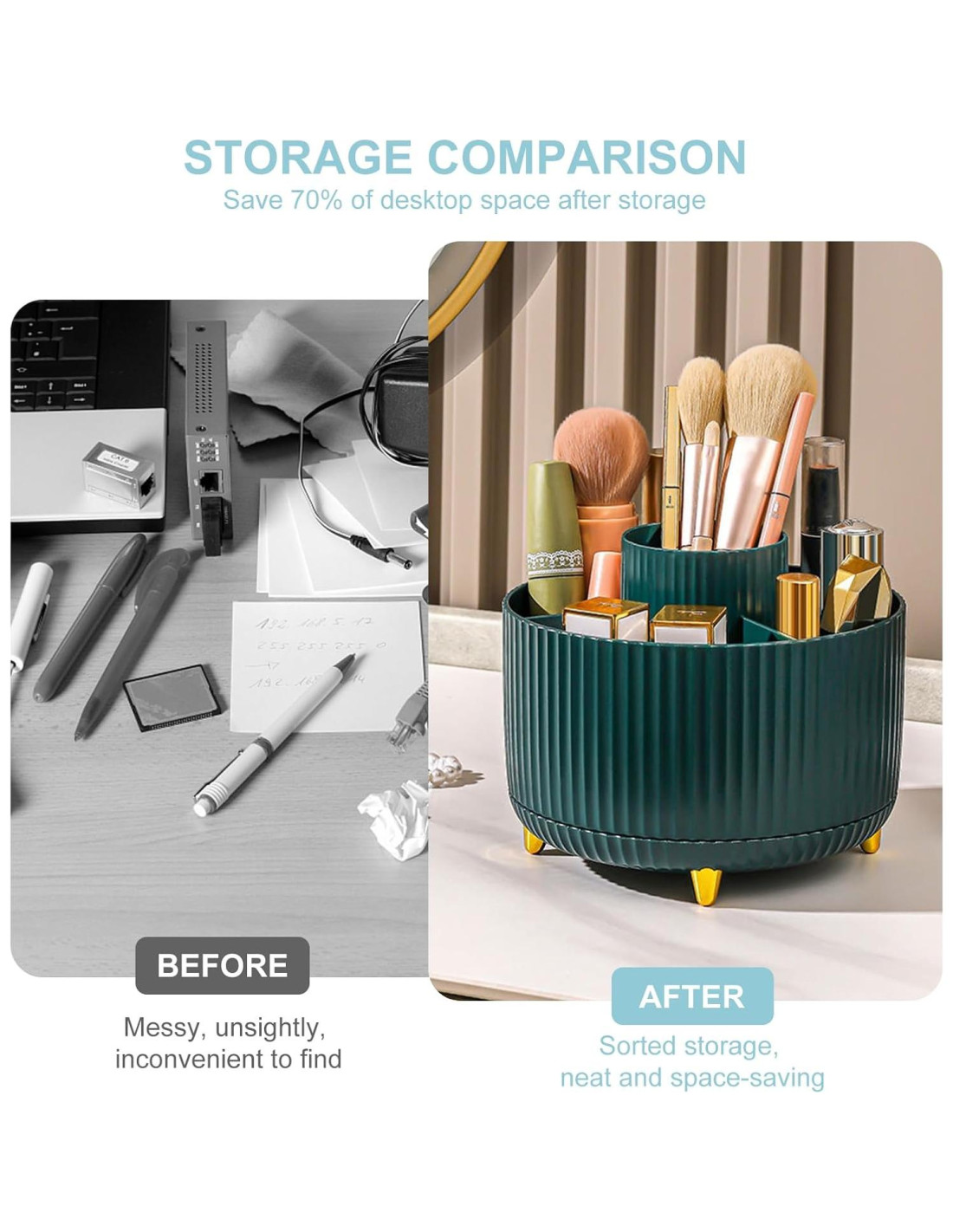 - [Organizador multipropósito] Este organizador de escritorio es ideal para cualquier espacio, como una oficina, hogar, baño, sala de estar, dormitorio, tocador, cómoda, superficie de trabajo y encimera utilizados para almacenar oficina, papelería, maquillaje, accesorios de baño y herramientas de superficie de trabajo.
