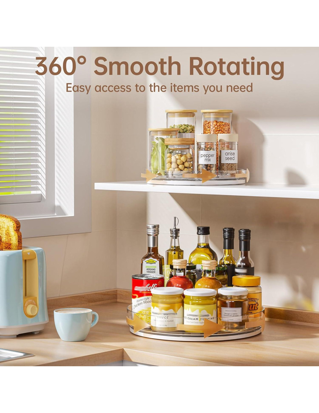 El lazy susan LAMU para gabinete incluye 1x11.42" (29.0 cm) y 2x9.06" (22.9 cm) organizadores giratorios. Este organizador Lazy Susan claro satisface una amplia variedad de necesidades de almacenamiento. Libre de BPA, rotación de 360, sin necesidad de instalación.