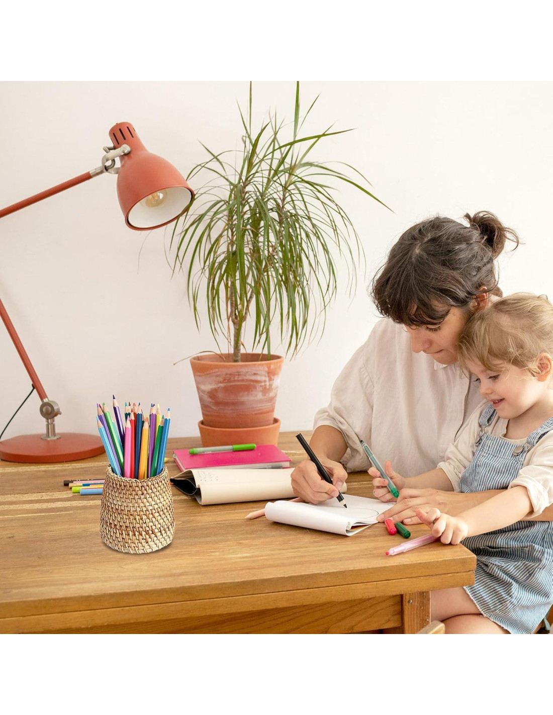 - Diseño Único: Este soporte de lápiz tejido es perfecto para organizar tus bolígrafos y pequeños utensilios para hacer tu espacio más ordenado. También puede ser una divertida decoración para añadir color a tu hogar y espacio de trabajo.
