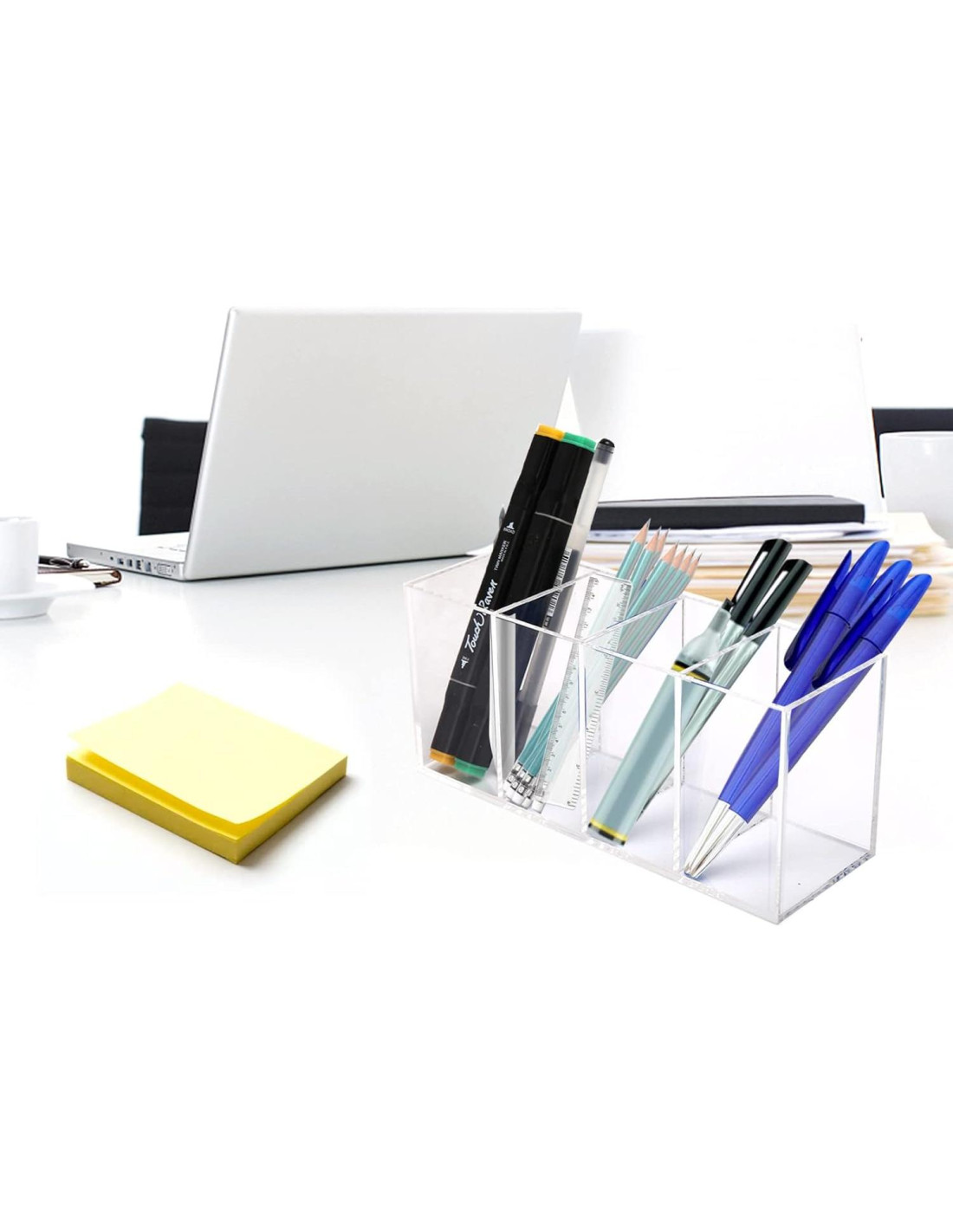 - Gran Capacidad Soporte de Lápices Transparente: El tamaño de los soportes de lápices acrílicos de 4 compartimentos es de 20.1*6.9*9.1 centímetros, puede contener alrededor de 100 bolígrafos de bola, o alrededor de 300 lápices.