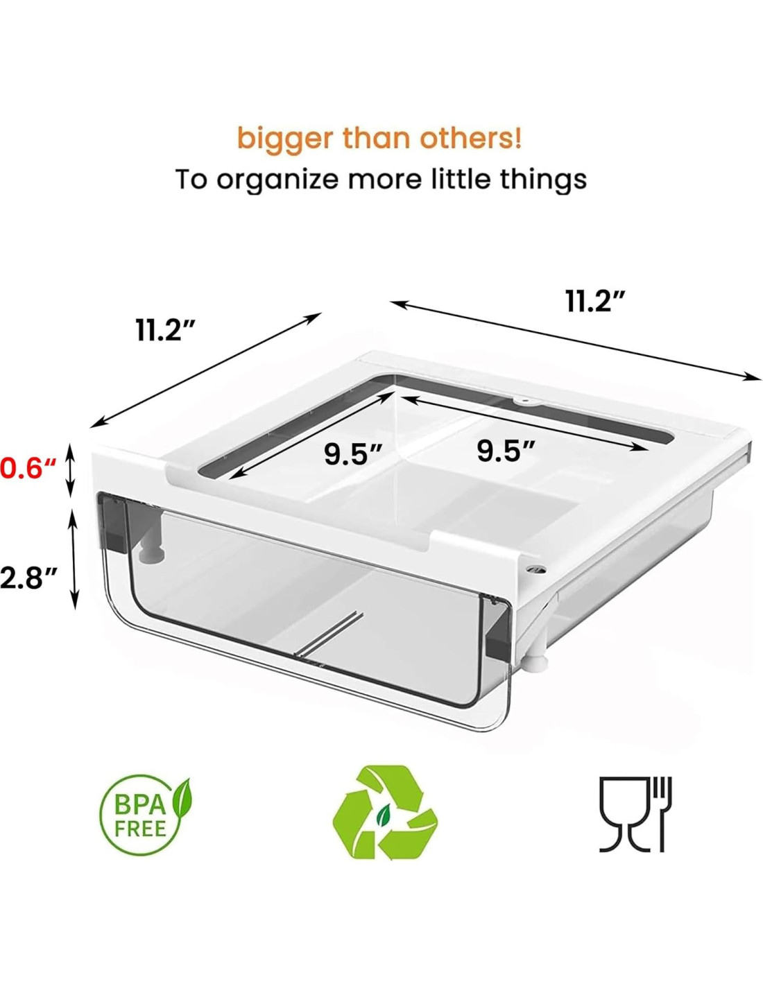 - [Libre de BPA para Más Necesidades] Hecho de material PET de grado alimenticio premium, este cajón bajo gabinete es más duradero y transparente. Fácil de limpiar sin absorber manchas u olores. NOTA: No usar en el lavavajillas. Limpiar con agua jabonosa tibia.
