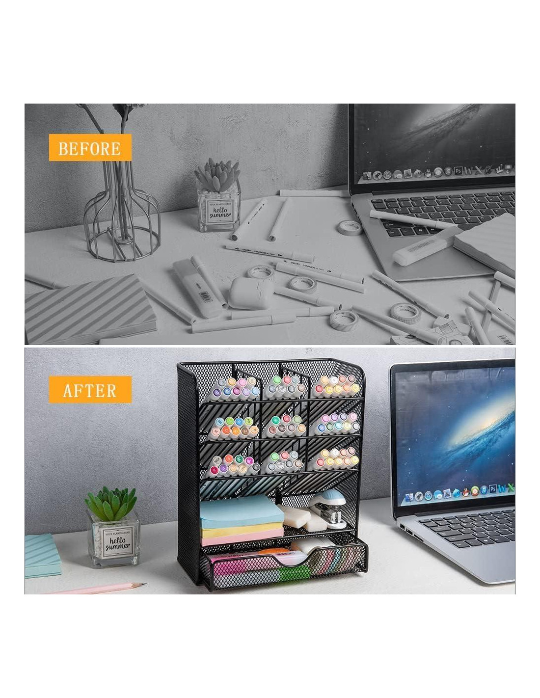 - Estructura Espacial Única: Este organizador de escritorio tiene 10 compartimentos y 1 cajón, amplio espacio de almacenamiento y diseño de compartimentos, puede hacer que tus pertenencias estén organizadas de manera ordenada, encontrar artículos al alcance de tu mano, despedirse del escritorio desordenado.