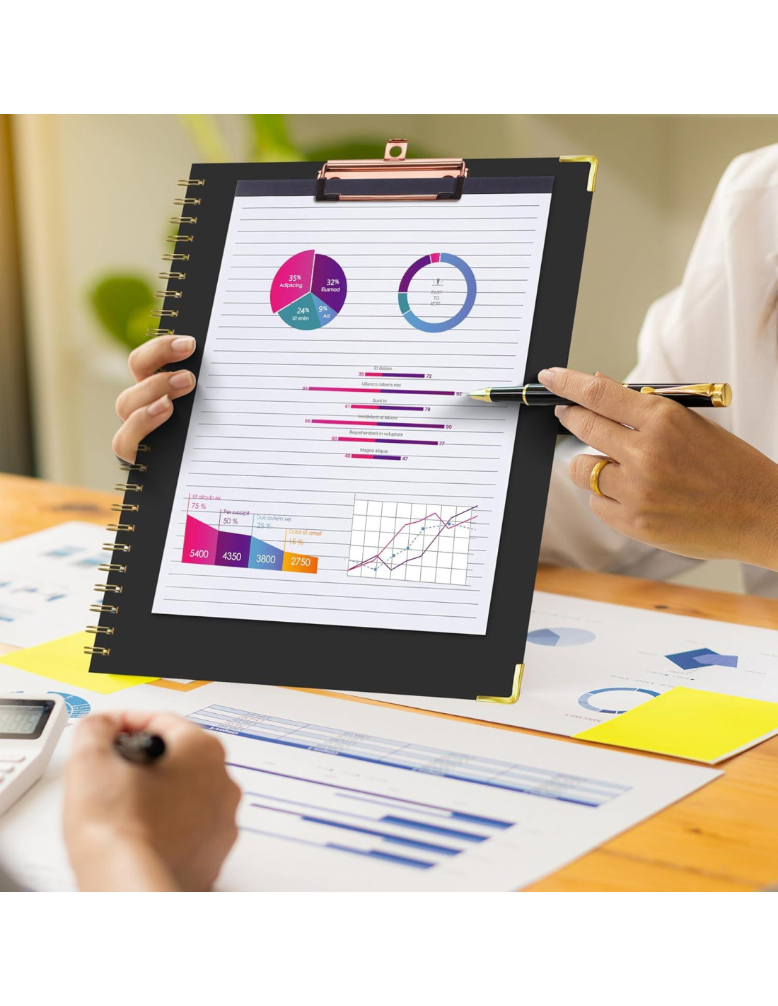 - Productividad Mejorada: Esta carpeta con portapapeles está diseñada para aumentar tu productividad manteniendo todos tus documentos y notas importantes organizados en un solo lugar. Con acceso rápido y fácil a tus materiales, puedes mantenerte enfocado y eficiente durante tu jornada laboral.