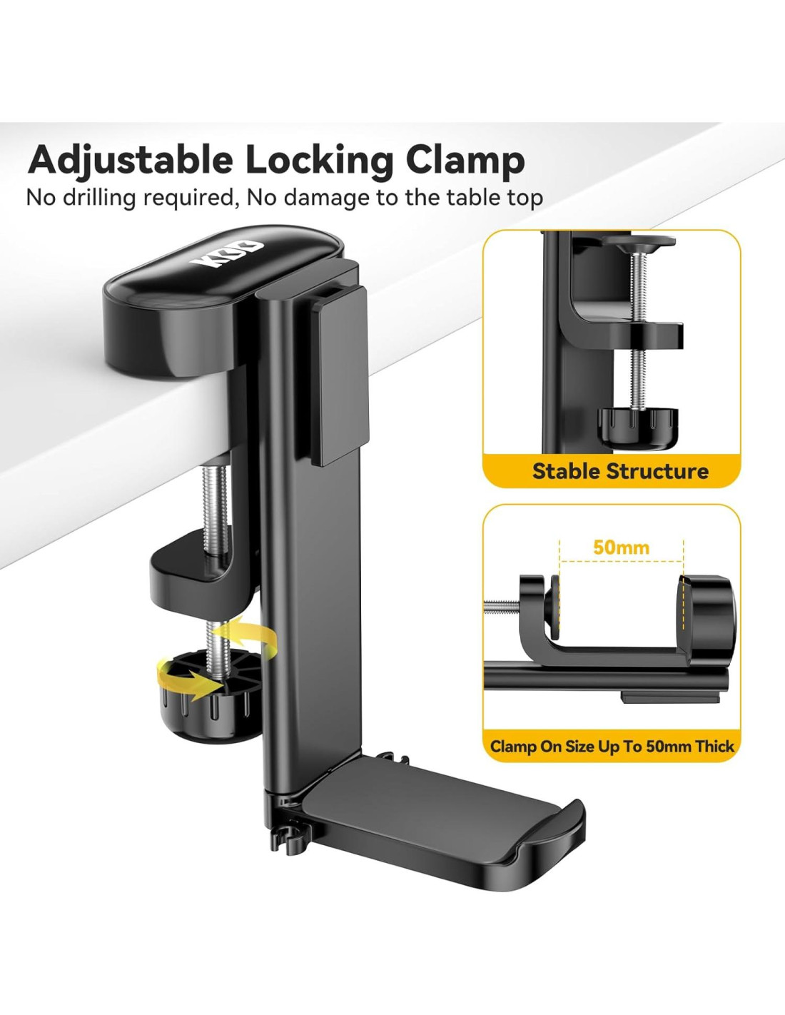 - Compatibilidad Universal - Es adecuado para sujetar a mesas de 5-50mm de grosor, que es universal en la mayoría de los escritorios. El soporte para auriculares se puede instalar no solo en escritorios, sino también en oficinas, salas de estar, dormitorios y cualquier otro lugar aplicable para espacio de almacenamiento adicional.