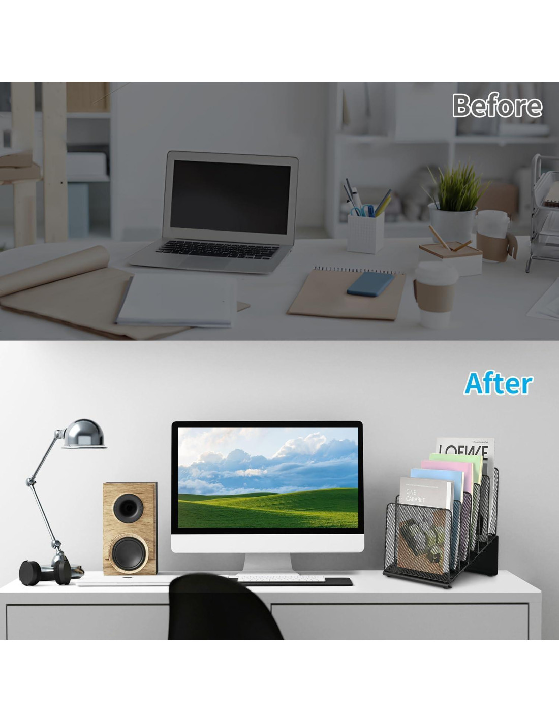 - [Organización Simplificada] Este organizador de oficina viene con 5 compartimentos espaciosos, lo que facilita mantener ordenado tu escritorio al organizar cuidadosamente tus archivos y revistas, despidiéndote de los espacios de trabajo desordenados.