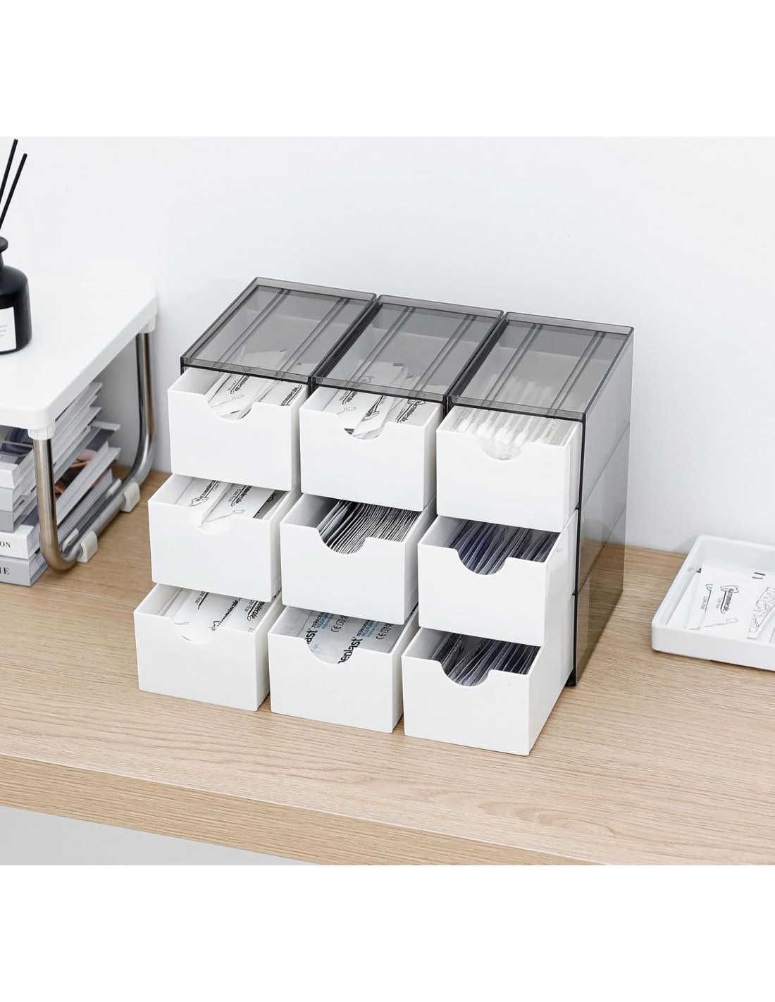 - TAMAÑO COMPACTO: La dimensión total (L x A x P): 3.3 x 5.1 x 7.5 Pulgadas (8.5 x 13.2 x 19.1 cm); Tamaño del cajón (L x A x P): 2.9 x 4.9 x 2.1 Pulgadas (7.5 x 12.5 x 5.5 cm). El paquete incluye 3 cajas organizadoras en blanco y negro con 9 cajones pequeños
