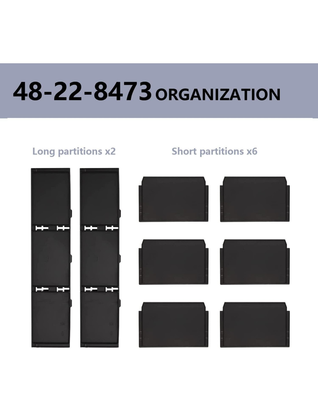 - 1. Los divisores 48-22-8473 Packout son adecuados para los divisores de cajón Milwaukee Packout para la caja de herramientas de 3 cajones Packout, lo que permite un almacenamiento personalizado.