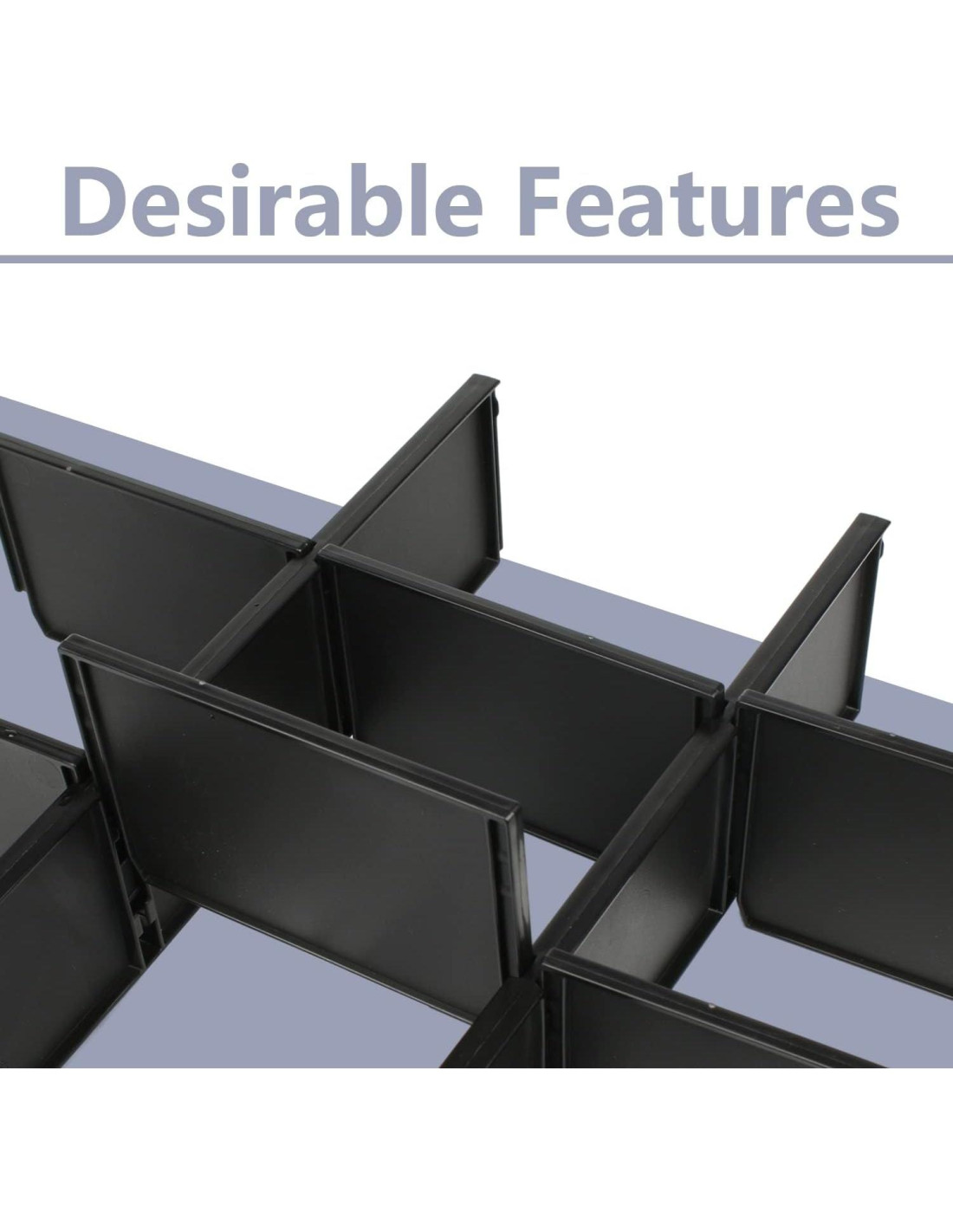- 5. Los divisores de cajón ajustables están diseñados para crear diseños personalizados para adaptarse a herramientas, accesorios y equipos. Tipo de producto: Divisores de cajón, Material: Plástico, Color / Acabado: Negro, Altura (cm): 7.62, Longitud (cm): 31.75