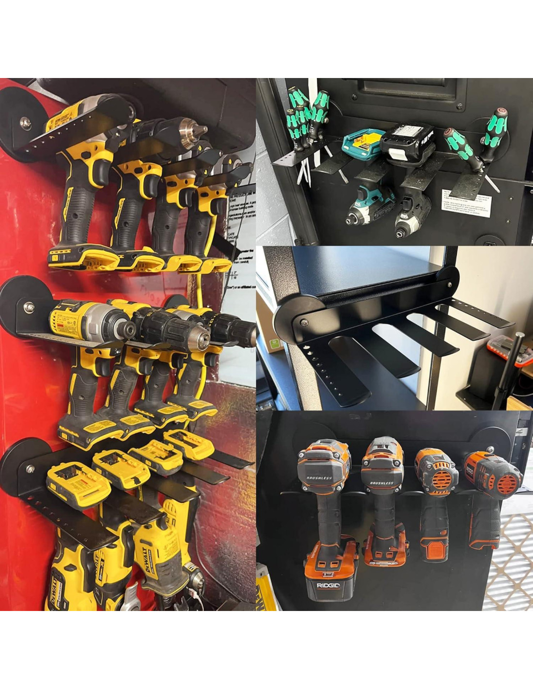 - [Soporte para Taladro Inalámbrico de Alta Resistencia]: Hecho de acero metálico de alta resistencia, las juntas del marco están reforzadas y soldadas, el soporte de herramientas es más fuerte para evitar que el estante de almacenamiento se rompa fácilmente y proteger tus herramientas eléctricas