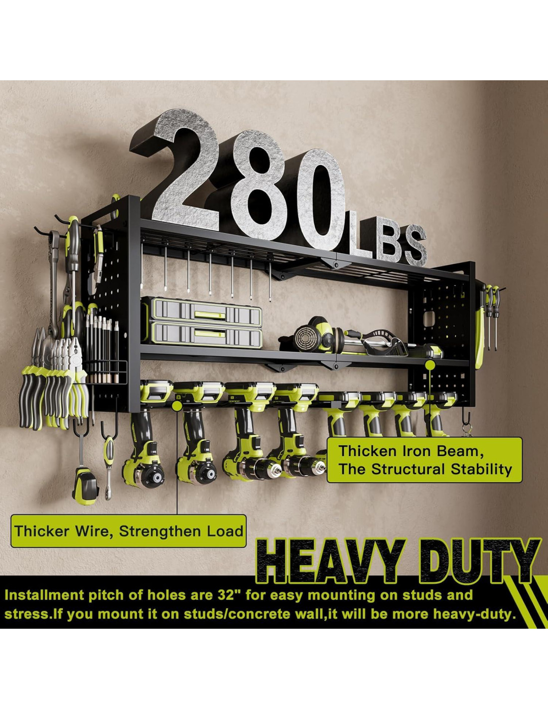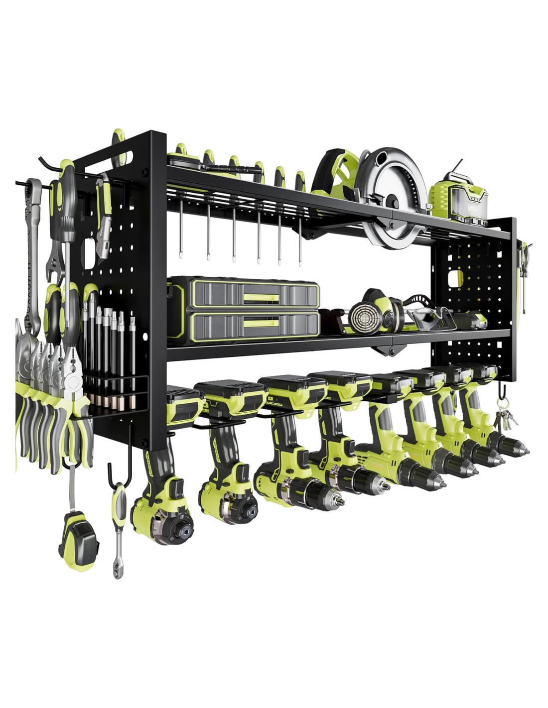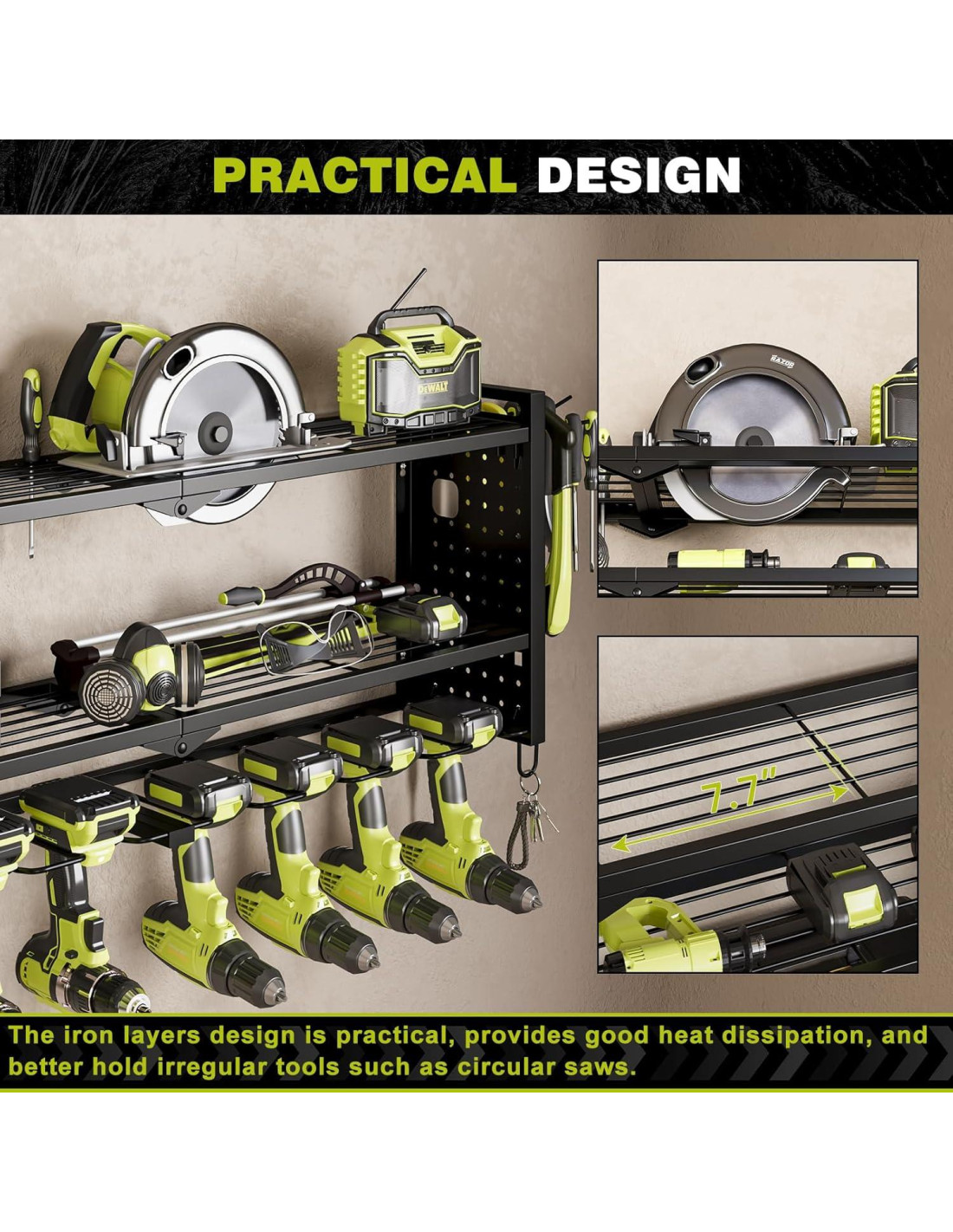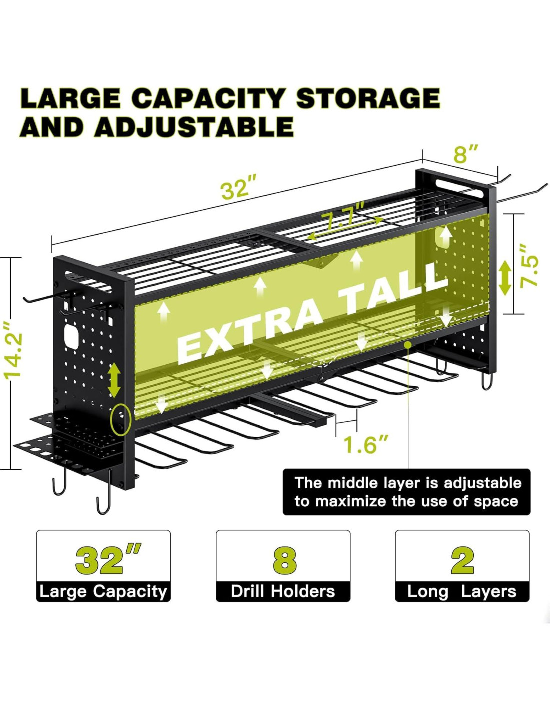 - Gran Capacidad: Con 19.05 centímetros de espacio entre los estantes, nuestro organizador de herramientas montado en la pared ofrece un amplio espacio de almacenamiento que no solo facilita el acceso a sus herramientas, sino que también acomoda una mayor variedad de tipos de herramientas.