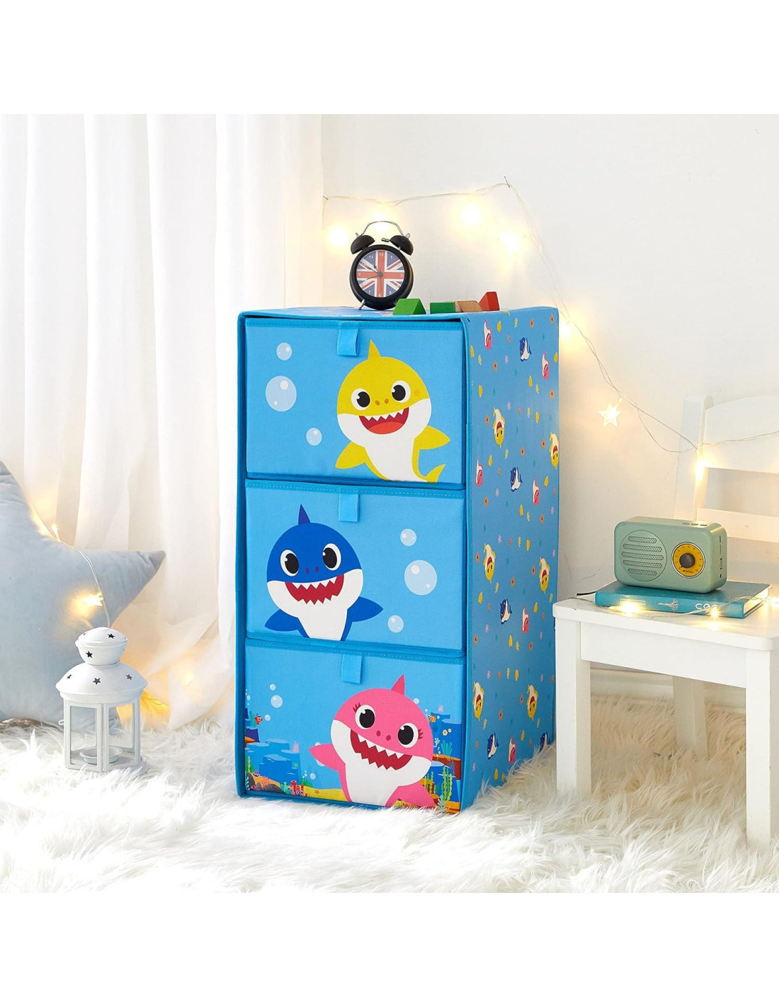 - DISEÑO: Impreso con gráficos de Baby Shark, este cajón de almacenamiento será el favorito de tu pequeño. Todos los fanáticos de Baby Shark adorarán este nuevo almacenamiento decorativo que presenta diseños icónicos por todas partes. Este divertido carrito de almacenamiento hará que limpiar sea más fácil para todos.