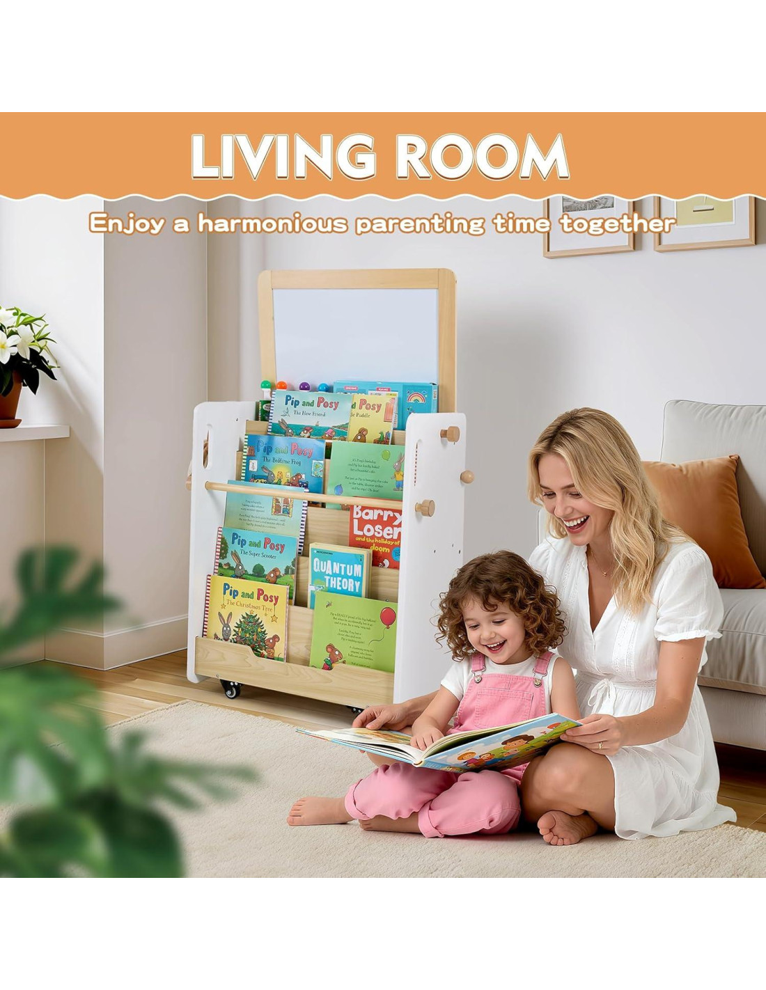 - Fácil de mover, fácil de colocar. Equipado con ruedas silenciosas de rodaje suave y bloqueos de freno, esta estantería para la guardería puede ir a cualquier parte: la sala de estar, la sala de juegos, el dormitorio o el estudio. Muévalo fácilmente, luego asegúrelo firmemente en su lugar con la presión de un freno. Diseñado para la diversión, construido para el crecimiento, esta estantería para niños es más que almacenamiento; es el corazón de la habitación de su hijo.