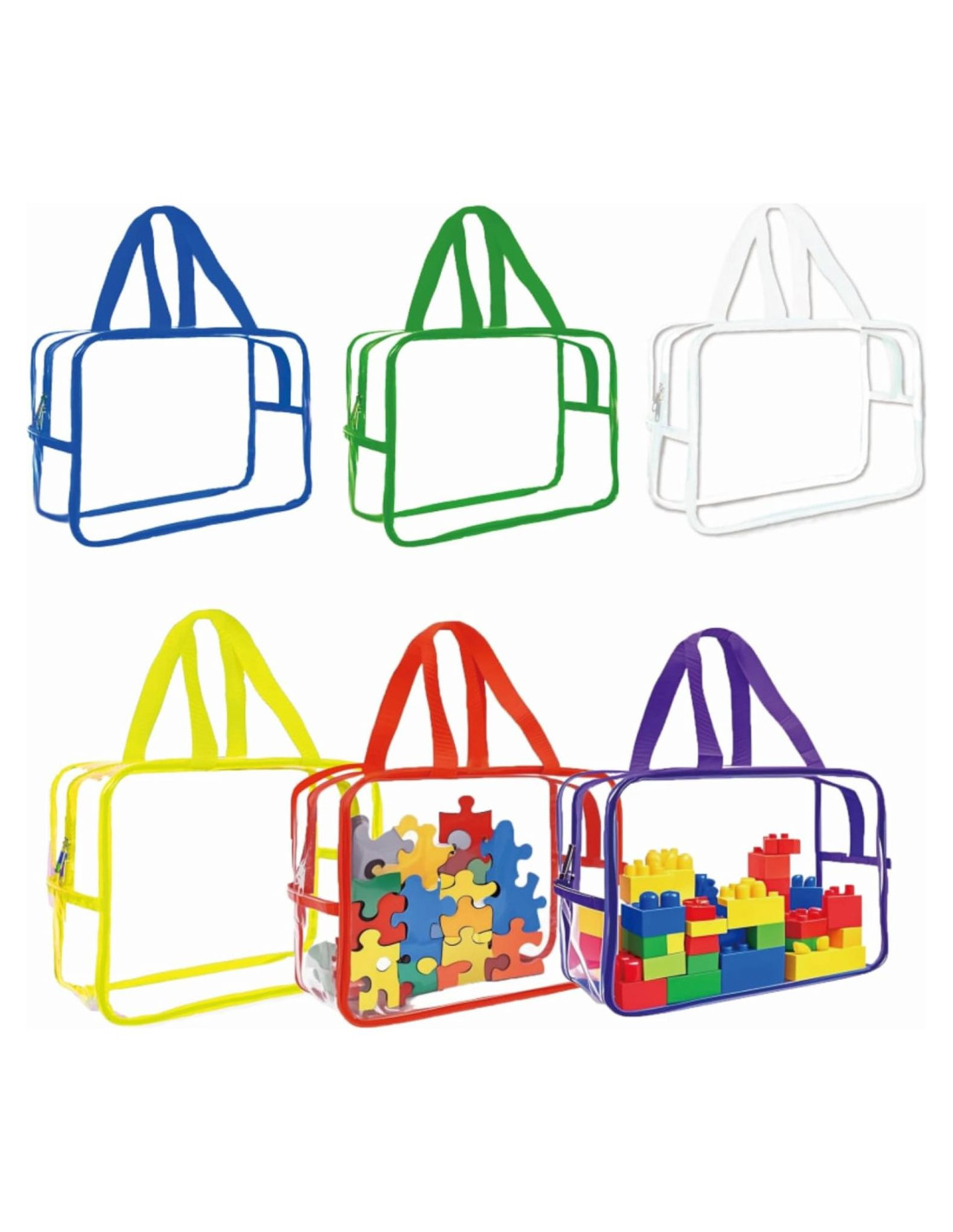 - Alta Calidad: Las bolsas de juguetes son de PVC claro y grueso con un borde y asa de tela, ambos cosidos de manera segura, lo que permite bolsas de almacenamiento más duraderas que combinan diversión y funcionalidad. El diseño claro de las bolsas es extremadamente práctico porque puedes ver rápidamente lo que hay dentro sin abrirlas.