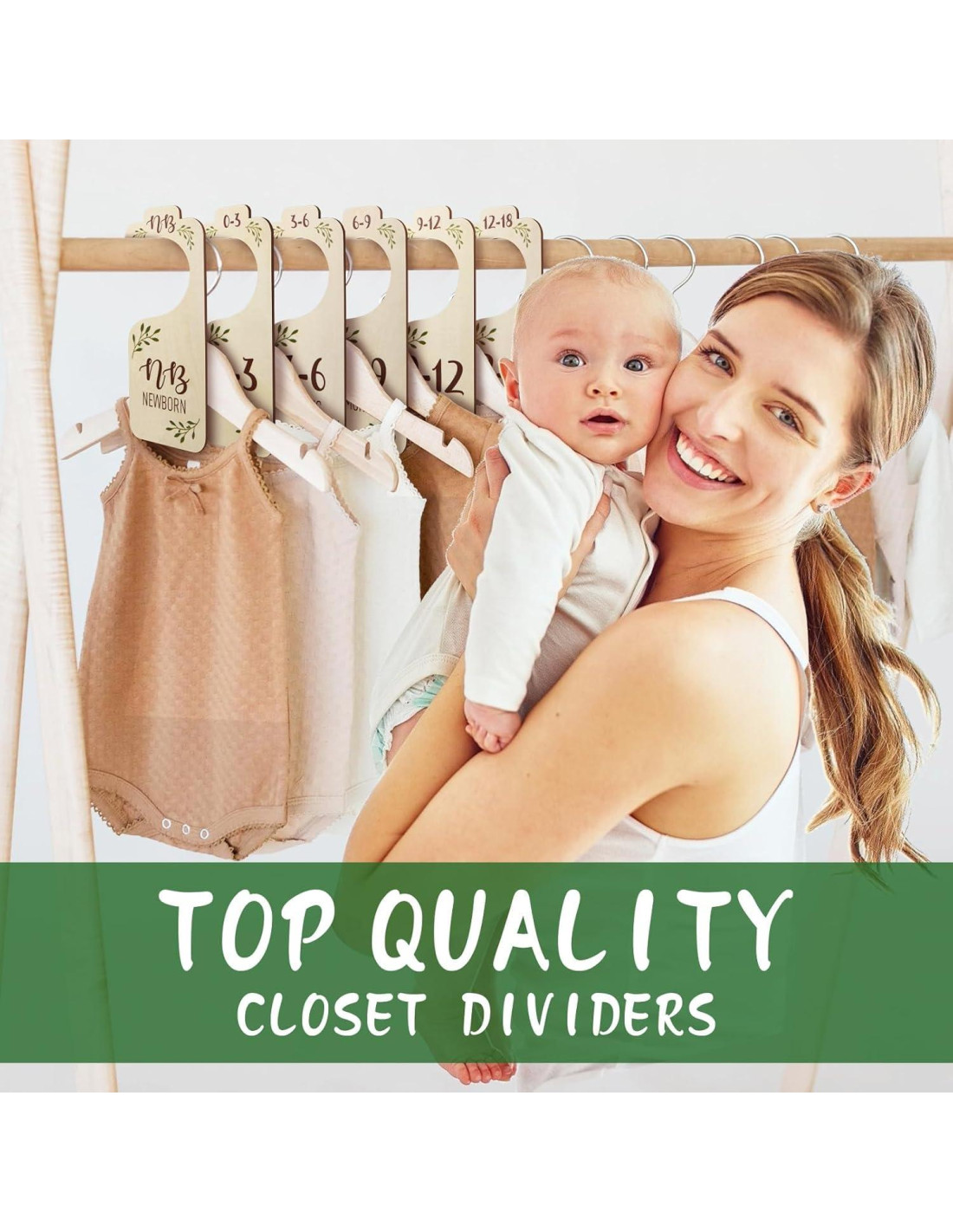 - Divisores de Género Neutro: Hermosos patrones están impresos en la superficie de cada divisor de ropa de bebé para el armario con estilo de vegetación, con elementos de hojas y diseño de madera neutra, el material de madera elegante combina bien con cualquier organización temática de guardería.