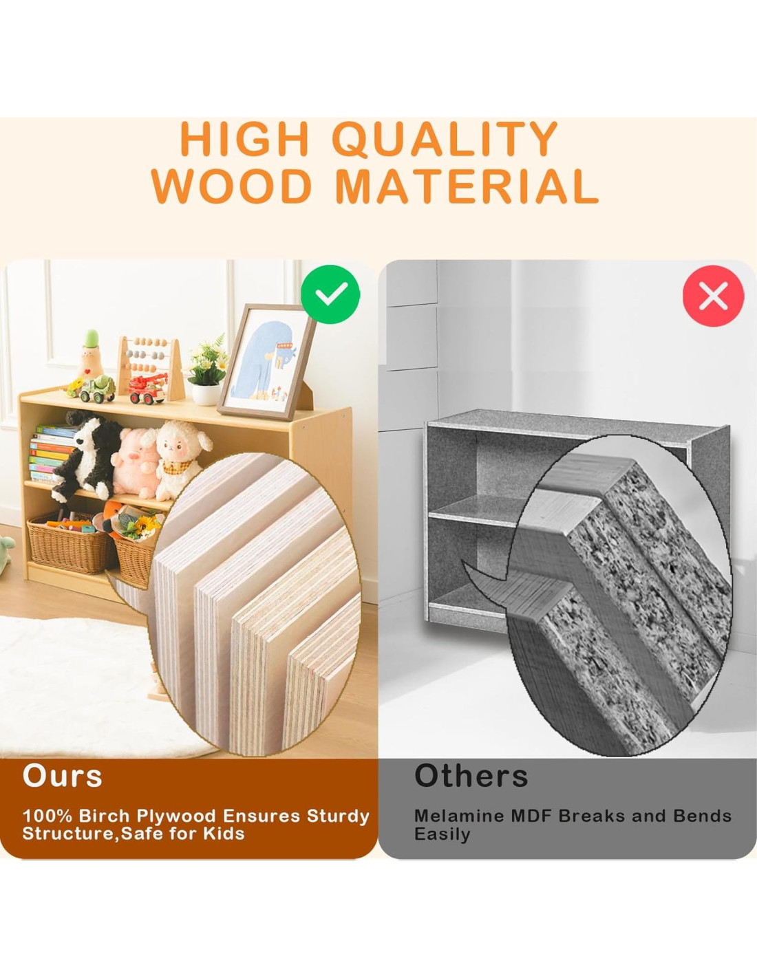 - Calidad de Madera de Abeto Premium: Nuestra estantería Montessori está hecha de contrachapado de abeto 100%, asegurando una estructura sólida. La combinación de textura de madera natural y espacio de múltiples compartimentos la convierte en la solución de almacenamiento perfecta para la escuela o la habitación de los niños para mantener los juguetes organizados. La superficie suave es fácil de mantener y limpiar con un paño seco