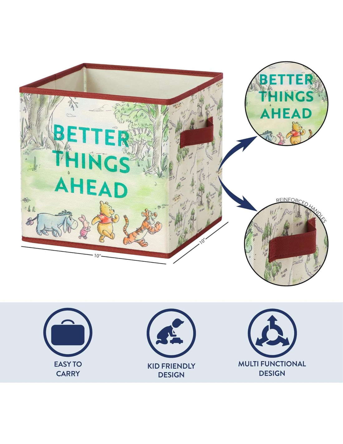 Estos cubos de almacenamiento de Winnie the Pooh en paquete de 2 son una forma práctica de mantener tu espacio organizado. Los cubos son muy versátiles y pueden agregar tanto organización como decoración a casi cualquier área. El set incluye dos cubos de almacenamiento con adorables gráficos de Disney Winnie the Pooh. Perfecto para guarderías, habitaciones de niños, lavandería, almacenamiento de libros, baño y más. Los cubos de almacenamiento de Winnie the Pooh en paquete de 2 pueden ayudar a hacer que organizar la habitación de tu hijo sea fácil y divertido. Dimensiones: 25.4 cm x 25.4 cm x 25.4 cm.
