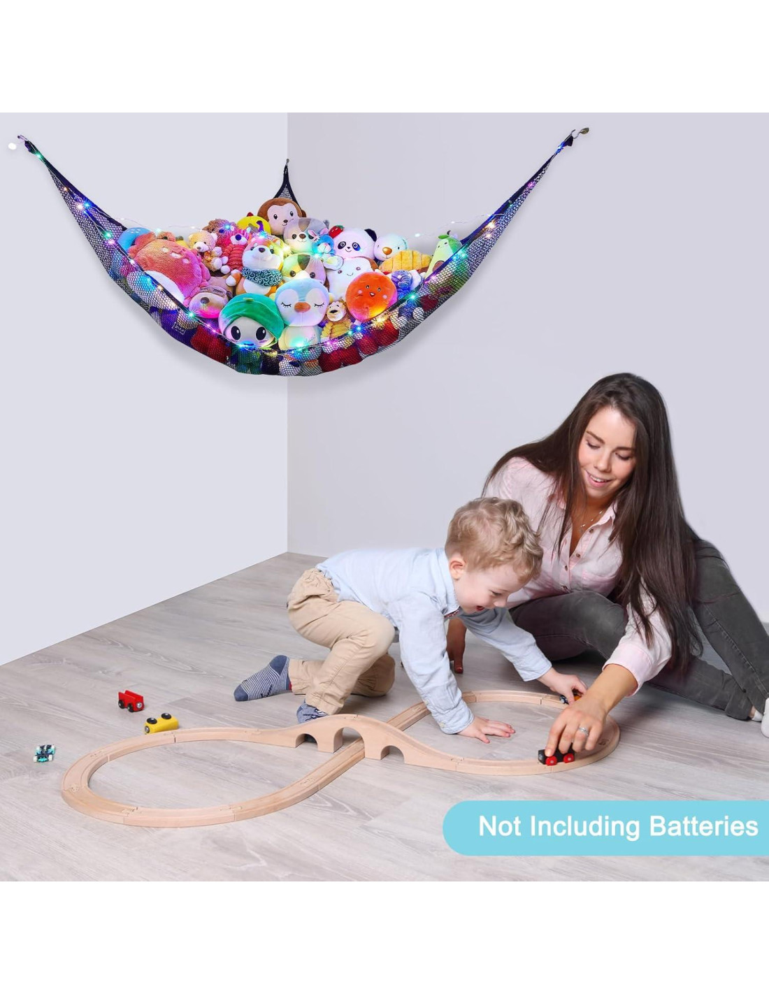 - Hamaca de Juguetes: Nuestra red o hamaca de animales de peluche puede ser una decoración para la habitación de tus hijos; Viene con luz LED, puede agregar un ambiente acogedor y divertido