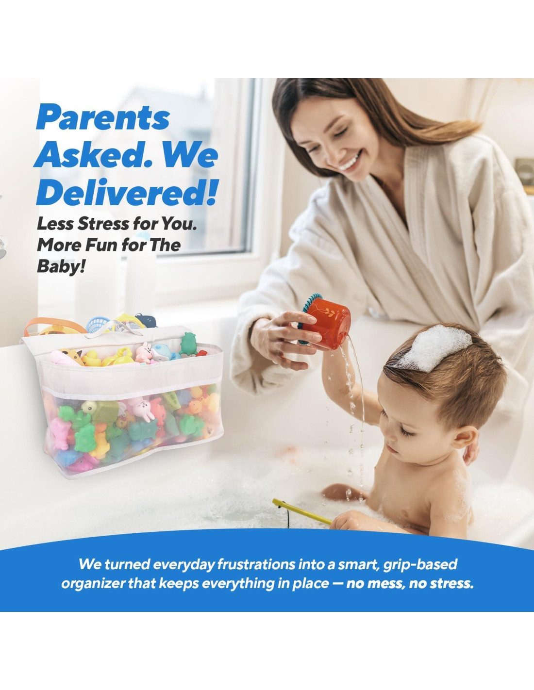 - Construido para Durar y Amigable para Niños: Fabricado con materiales duraderos y resistentes, este contenedor de juguetes de baño mantiene los juguetes seguros y al alcance. Diseñado para la longevidad, simplifica su rutina mientras agrega un toque de orden al espacio de juego de baño de sus hijos.