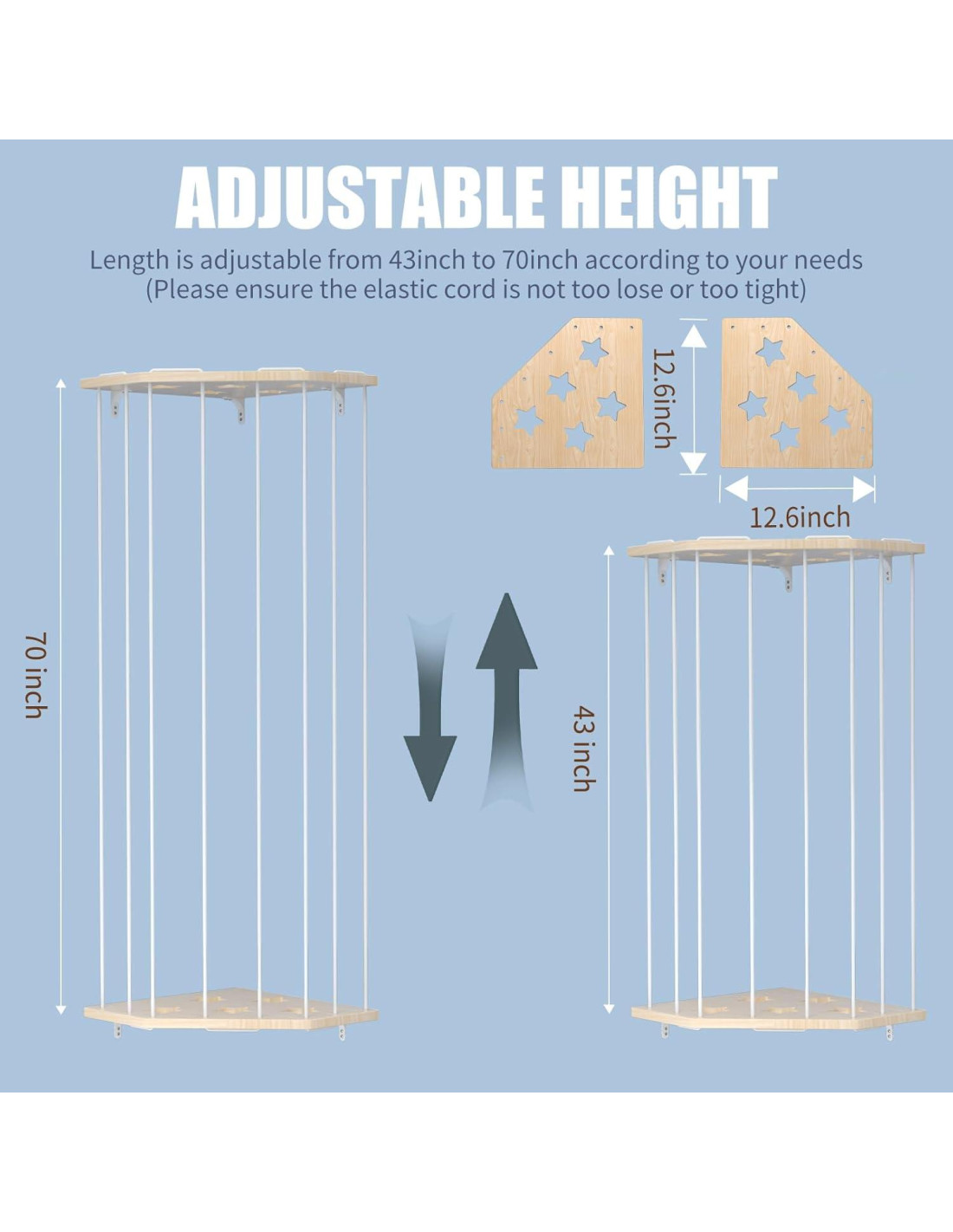 - ALMACENAMIENTO DE ANIMALES DE PELUCHE DE GRAN CAPACIDAD: Gracias a su diseño de altura ajustable, este almacenamiento de animales de peluche varía de 109.22 cm a 177.8 cm, su capacidad máxima es de hasta 97L, perfecto para sostener muchos juguetes de animales de peluche de diferentes tamaños, puede seleccionar la altura perfecta según sus necesidades. También gracias a los cordones elásticos, este soporte de animales de peluche es muy conveniente para que los niños recojan u organicen los juguetes, sin necesidad de ayuda de adultos.