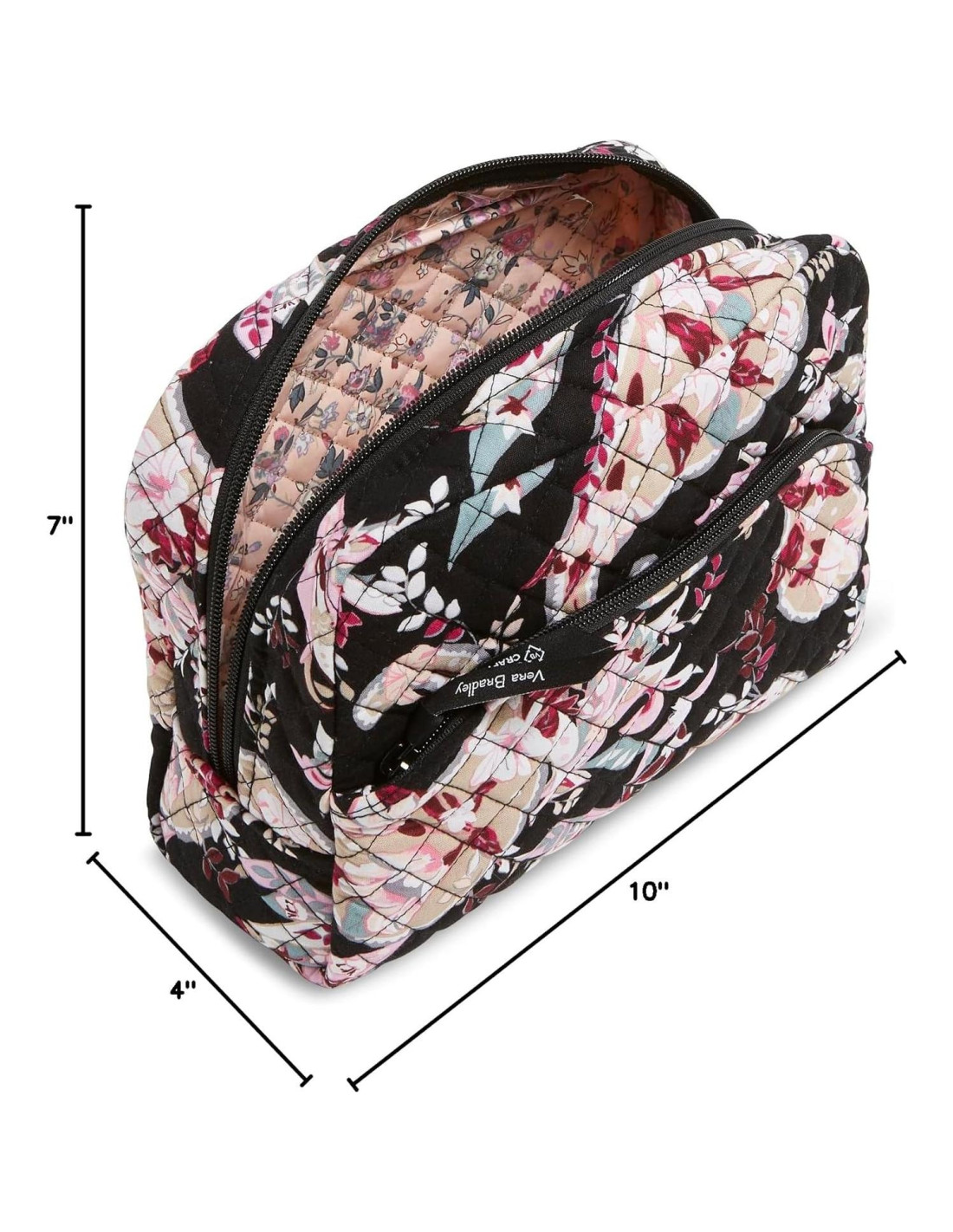 El algodón de firma es colorido y ligero. Bolsillo frontal con cremallera. El compartimento principal está forrado de PVC. Cierres de cremallera. Limpieza en seco. Las bolsas de maquillaje Vera Bradley funcionarán como una bolsa de maquillaje de viaje, un organizador de maquillaje en casa o almacenamiento de maquillaje, una bolsa de maquillaje para el bolso, y puedes comprar algunas para crear tu propio conjunto de bolsas de maquillaje.