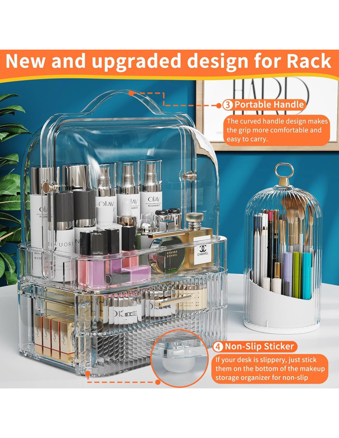 - Antideslizante: La caja de almacenamiento de cosméticos tiene 4 parches de silicona redondos que se adhieren a los 4 pies de soporte en la parte inferior del Organizador y Almacenamiento de Maquillaje para mantenerlo estable. Además, el cajón visual se desliza suavemente.