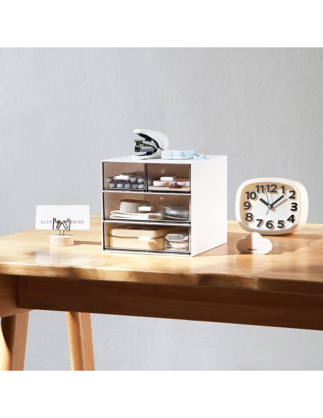 - Encuentra fácilmente lo que necesitas: Organizador de maquillaje con 4 cajones transparentes.