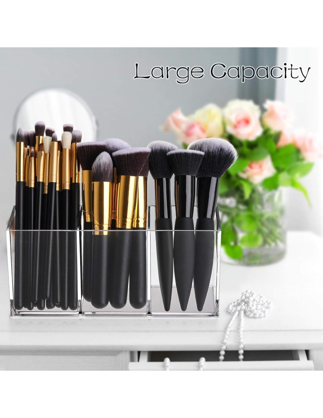- El aspecto transparente, y se ve elegante en tu tocador. Sostiene muchas brochas sin ocupar demasiado espacio