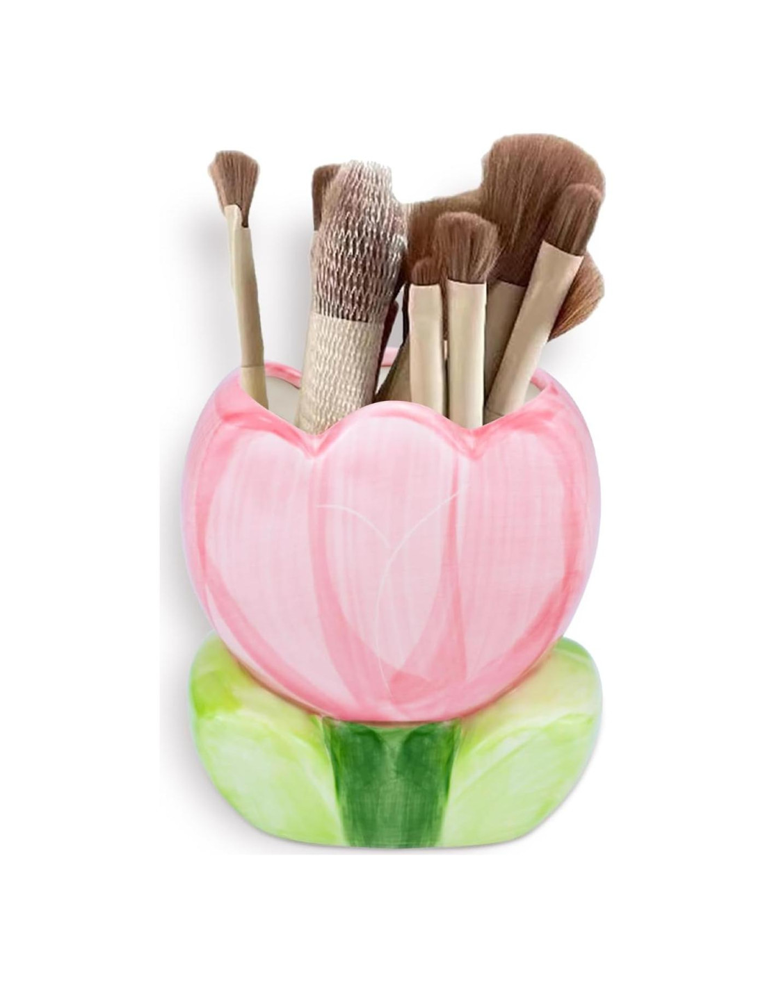 - Diseño elegante: Este soporte para brochas está diseñado con una hermosa forma de tulipán, añadiendo un toque de elegancia a tu baño o mesa de tocador.