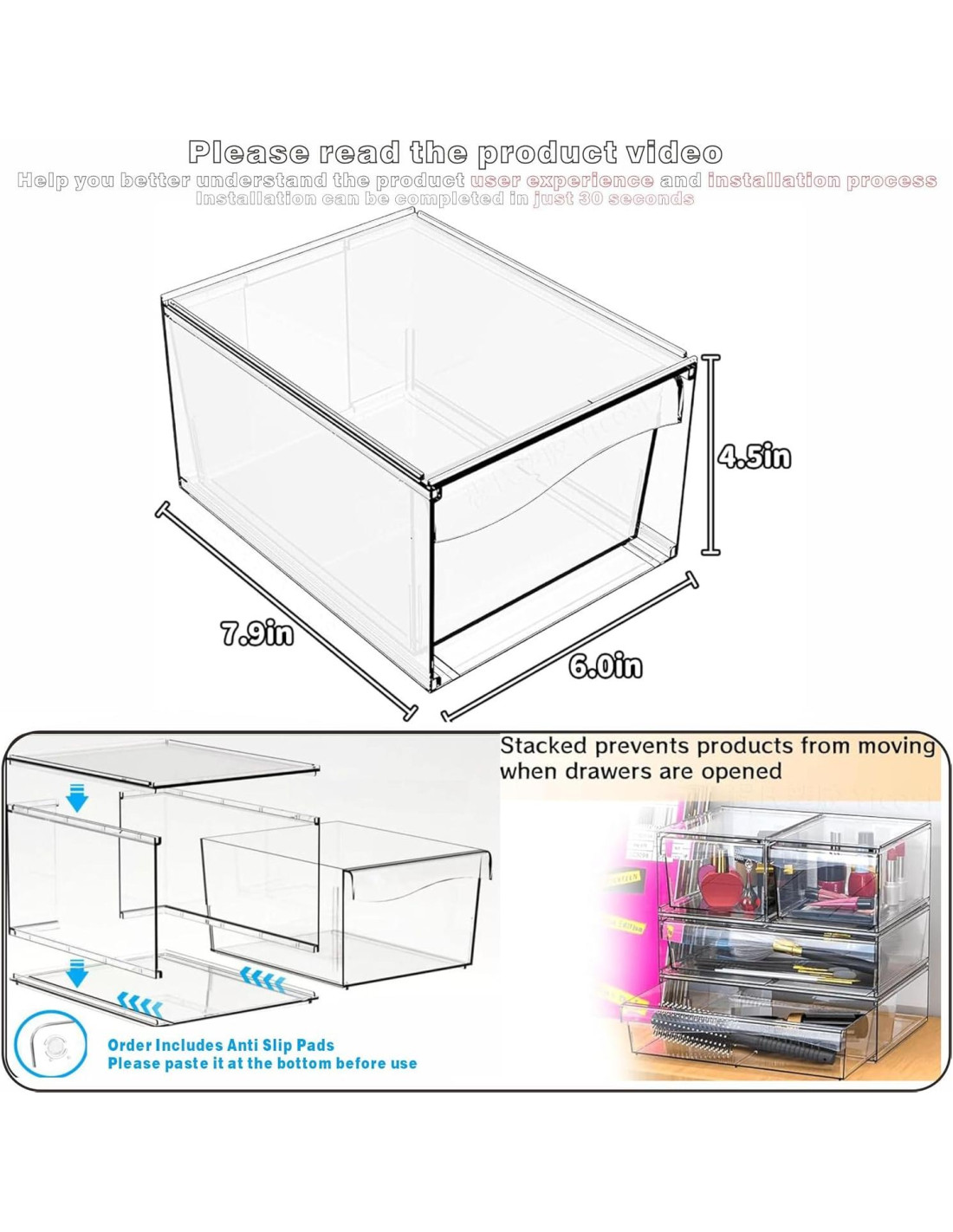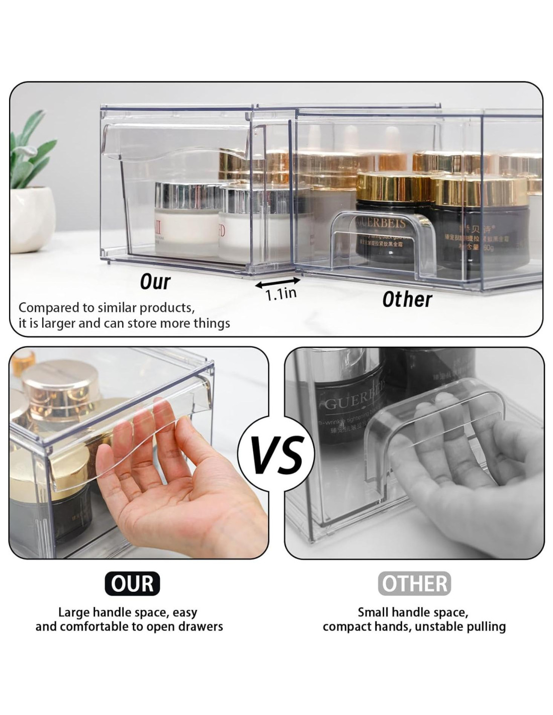 - Diseño de Cajones Apilables - Los organizadores transparentes pueden apilarse uno sobre otro, puedes usar cada cajón por separado, es muy adecuado para colocarse en el dormitorio, habitación, encimera de tocador, mesa de maquillaje, escritorio de oficina, contenedores de organización clara de baño.