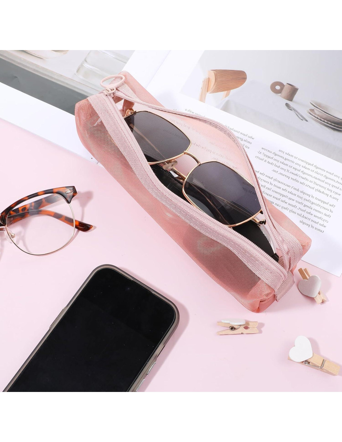 - Almacenamiento Versátil: A pesar de su pequeño tamaño, estos estuches de cremallera de malla ofrecen amplio espacio para brochas de maquillaje, lápices labiales, auriculares, llaves y más. La estructura flexible se adapta a varios artículos, haciéndolos adecuados para cosméticos, papelería o esenciales de viaje.