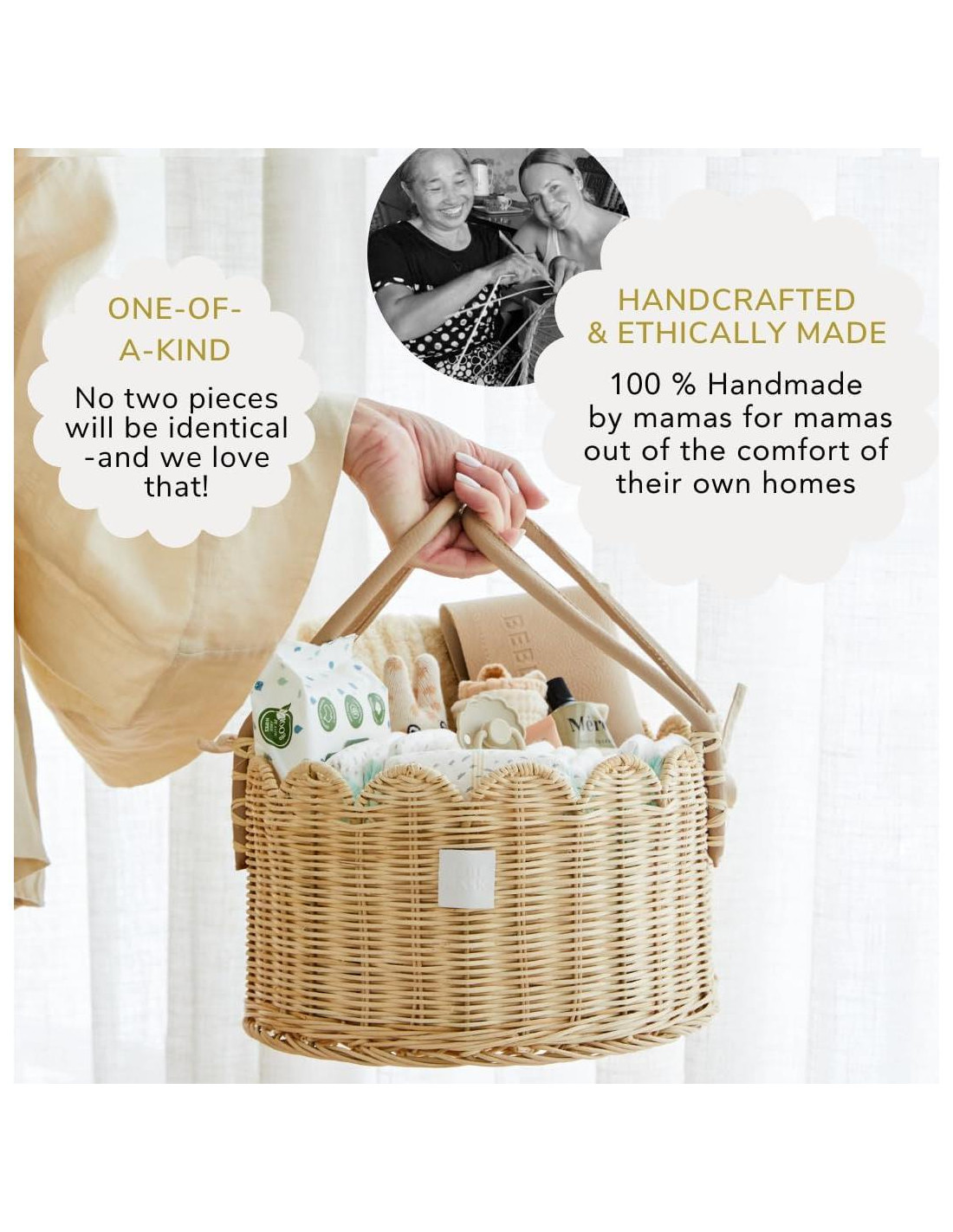 - CESTA DE BABY SHOWER DE GÉNERO NEUTRAL - La caddy de pañales portátil "Poppy" es ideal para regalar, esta cesta de pañales natural se puede presentar en su forma pura o personalizada con esenciales para el bebé. Un favorito seguro en los baby showers, este almacenamiento de caddy de pañales es una agradable sorpresa que los nuevos padres adorarán