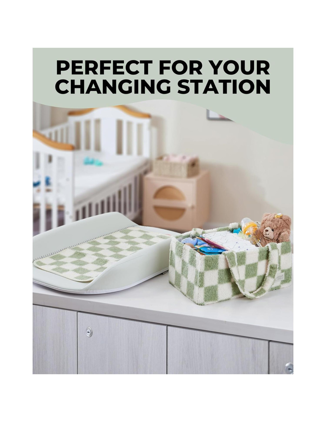 - Suave, Elegante y Práctico - Elaborado con felpa de oso de peluche en un diseño moderno a cuadros, la cesta de pañales añade un toque cálido y decorativo a cualquier guardería o área de cambio.