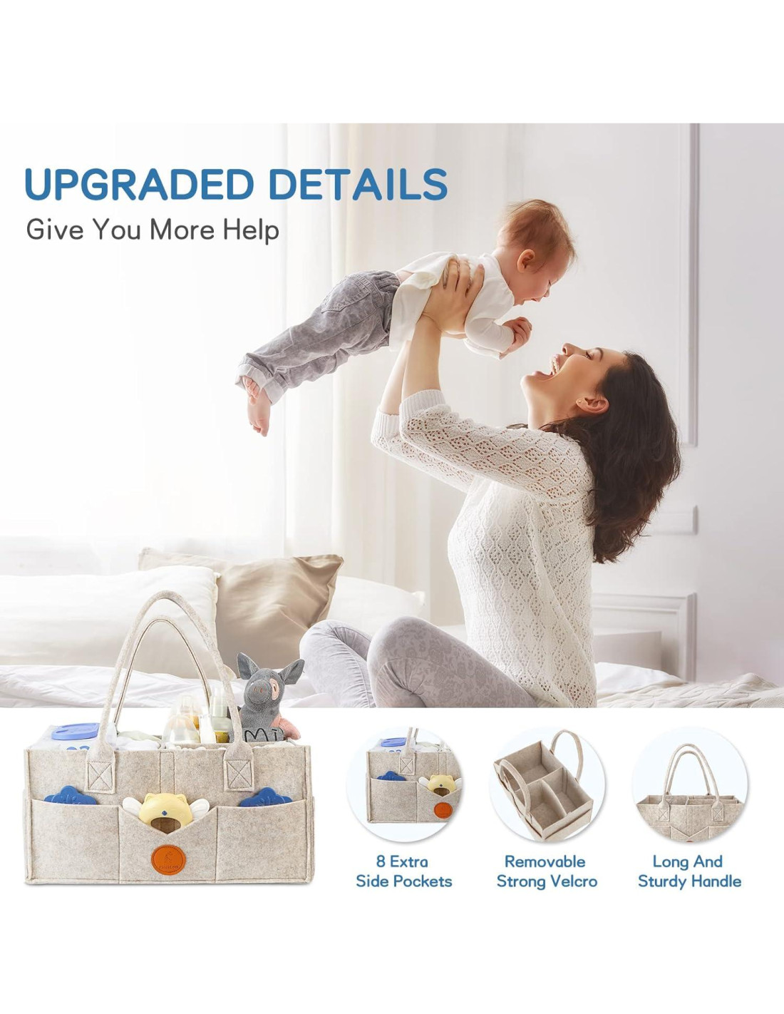 - AMIGABLE CON LA PIEL Y DE CALIDAD PREMIUM- El organizador de pañales está hecho con material de fieltro suave y de alta calidad, que proviene de la naturaleza, por lo que es perfectamente ecológico y seguro para los bebés