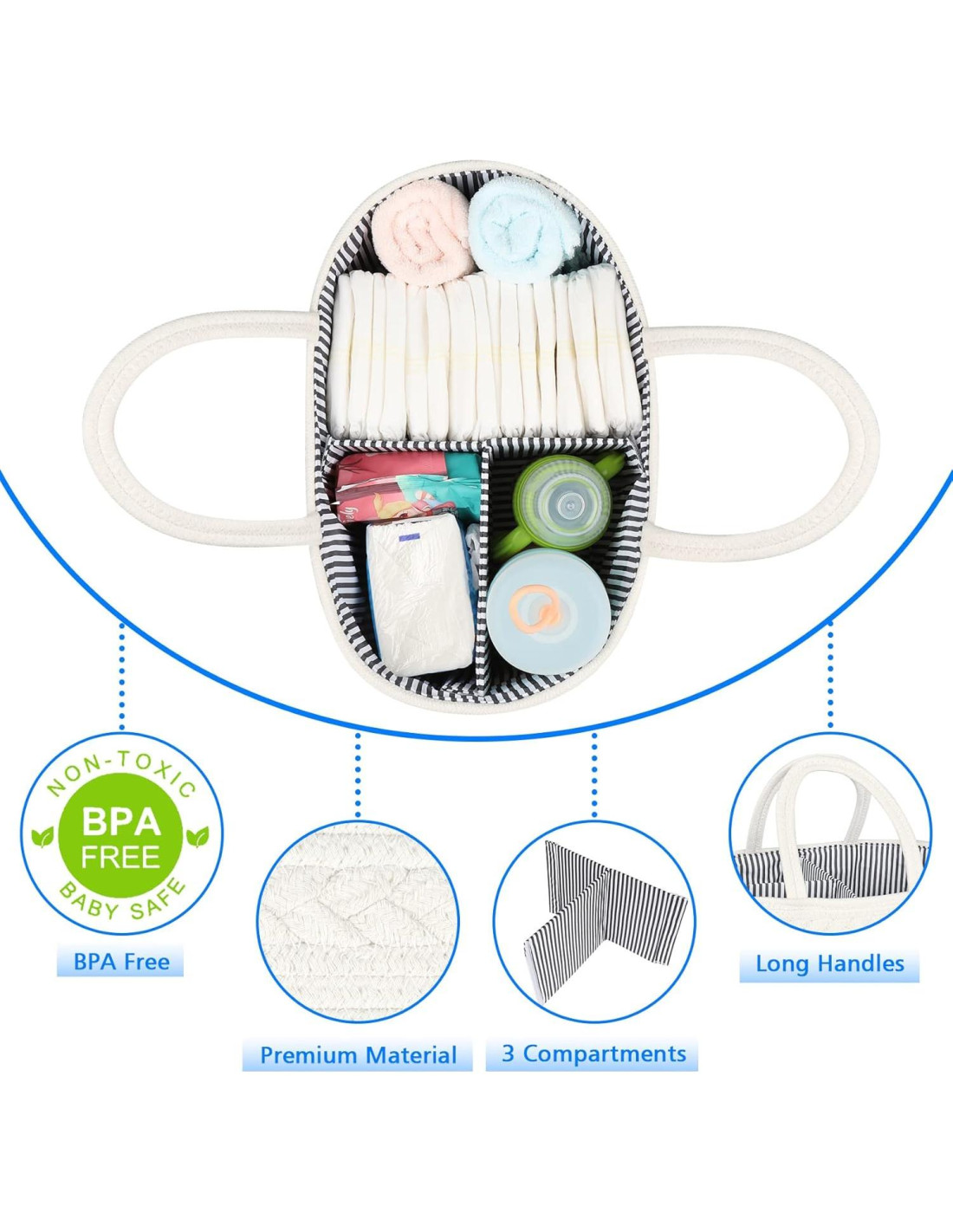 - Cesta de guardería portátil con asas más largas, fácil de mover el caddy para bebés por la casa o como organizador de auto.