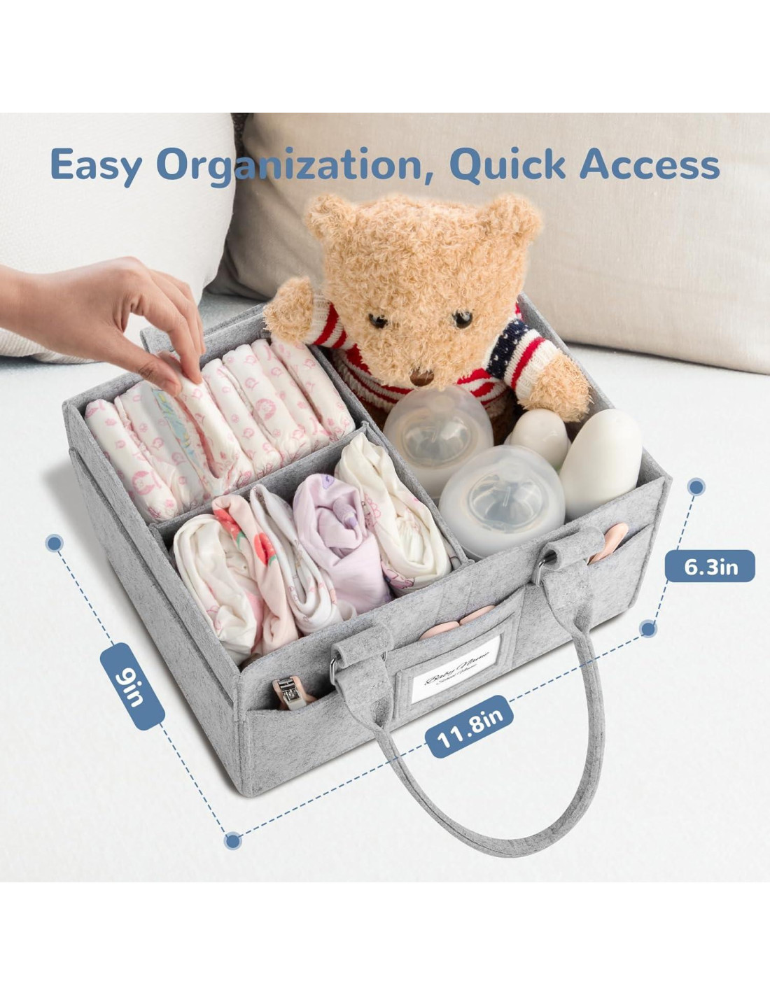 - HACER QUE EL ALMACENAMIENTO DE ESENCIALES PARA BEBÉS SEA FÁCIL: Nuestro organizador de pañales para bebés es lo suficientemente grande para almacenar docenas de cosas de bebé: juguetes, pañales, ropa de bebé, toallitas, baberos y otros esenciales para bebés. Mantén todo lo que necesitas al alcance de la mano para una experiencia en la guardería sin complicaciones.