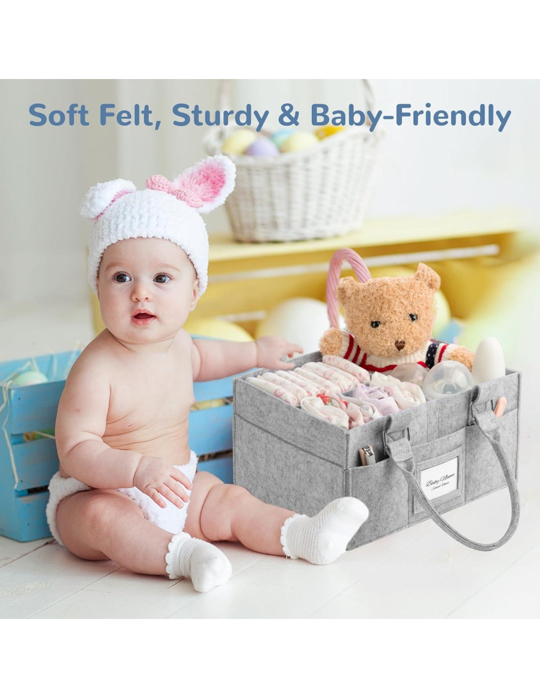 - Característica especial: Versátil y Multifuncional: Canasta de Regalo Vacía, Regalo para Baby Shower, Organizador de Pañales, Contenedor de Juguetes, Canasta de Manualidades, Construcción Duradera y Resistente, Ligera y Portátil, Estilosa y Moderna