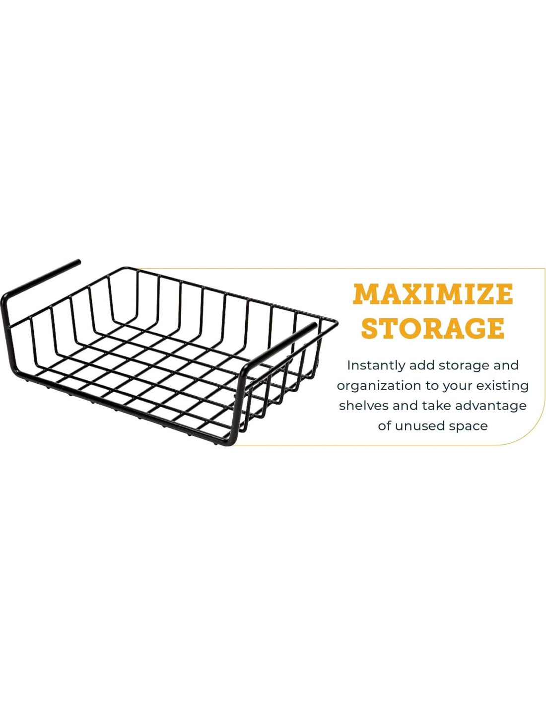 - Fácil de Instalar Almacenamiento Bajo Estante - sin herramientas requeridas, simplemente desliza la cesta bajo estante sobre el estante de tu caja fuerte y obtén espacio instantáneo. La cesta de almacenamiento se desliza sobre estantes de 1.27 cm a 2.54 cm de grosor y soporta hasta 18.14 kilogramos. Dimensiones: 30.48 cm de ancho x 6.35 cm de alto x 22.86 cm de profundidad