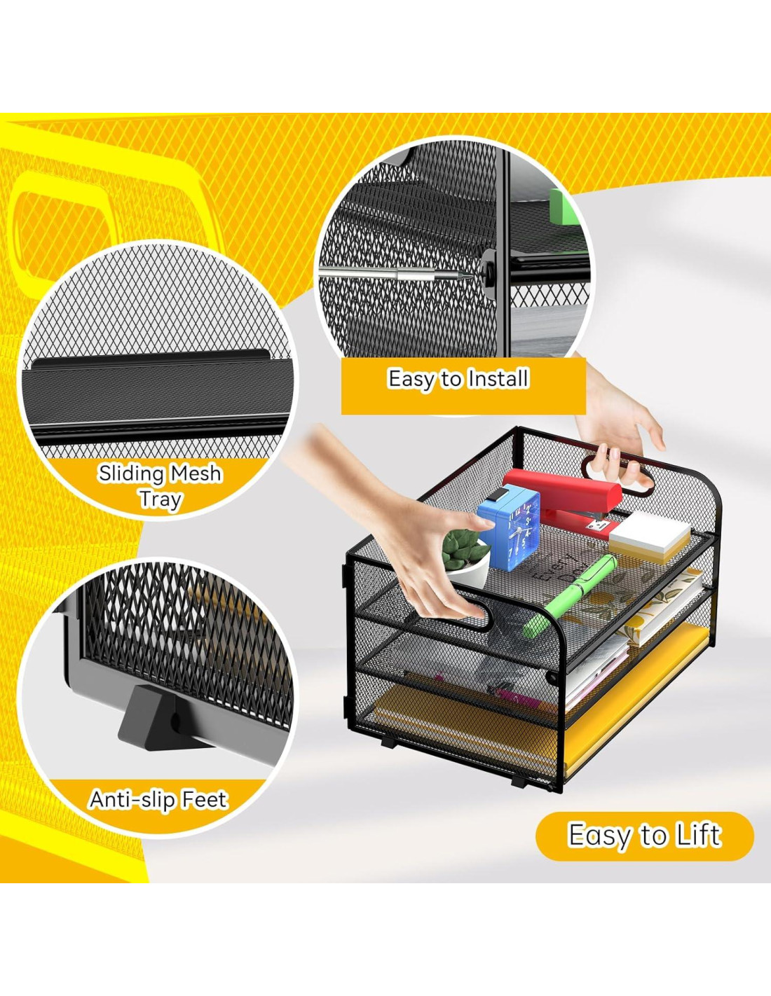 - INSTALACIÓN FÁCIL El proceso de instalación de este organizador de archivos de escritorio es muy simple y conveniente. Se puede instalar en dos minutos, ahorrándote tiempo