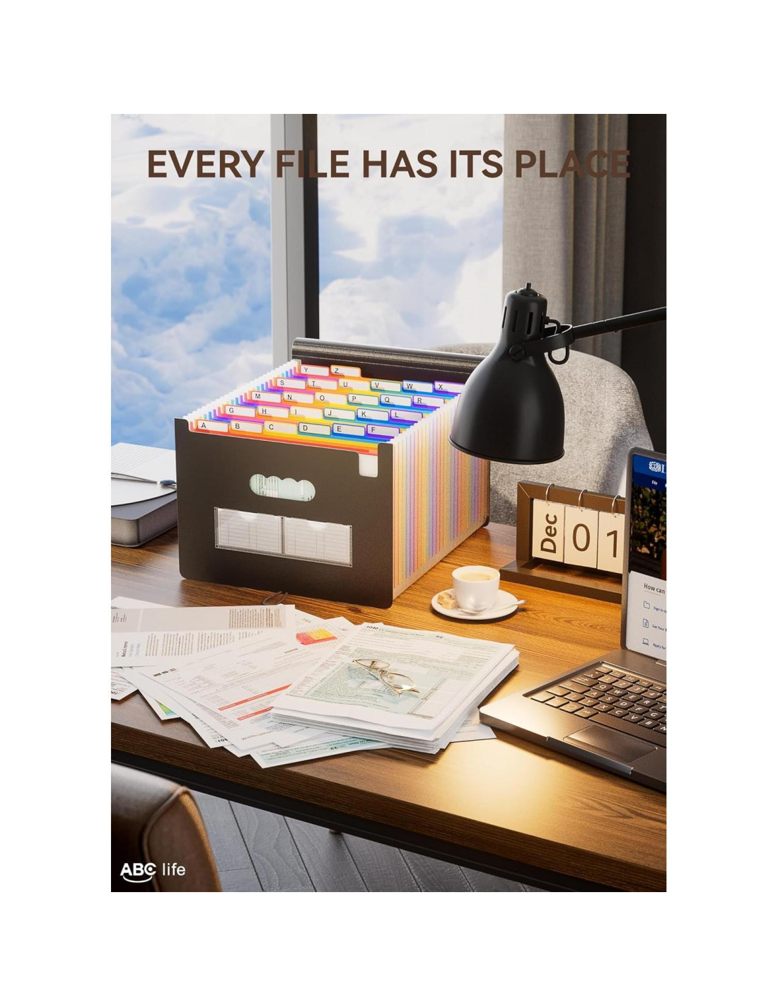 - [26 Carpetas Expansibles] Organizador de archivos ABC vida adecuado para archivar impuestos y almacenar documentos familiares importantes. El tamaño del producto es 33 cm x 24 cm x 71 cm (13" x 9.4" x 28"). La parte superior e inferior son ambas expansibles, para archivos de tamaño carta/A4.