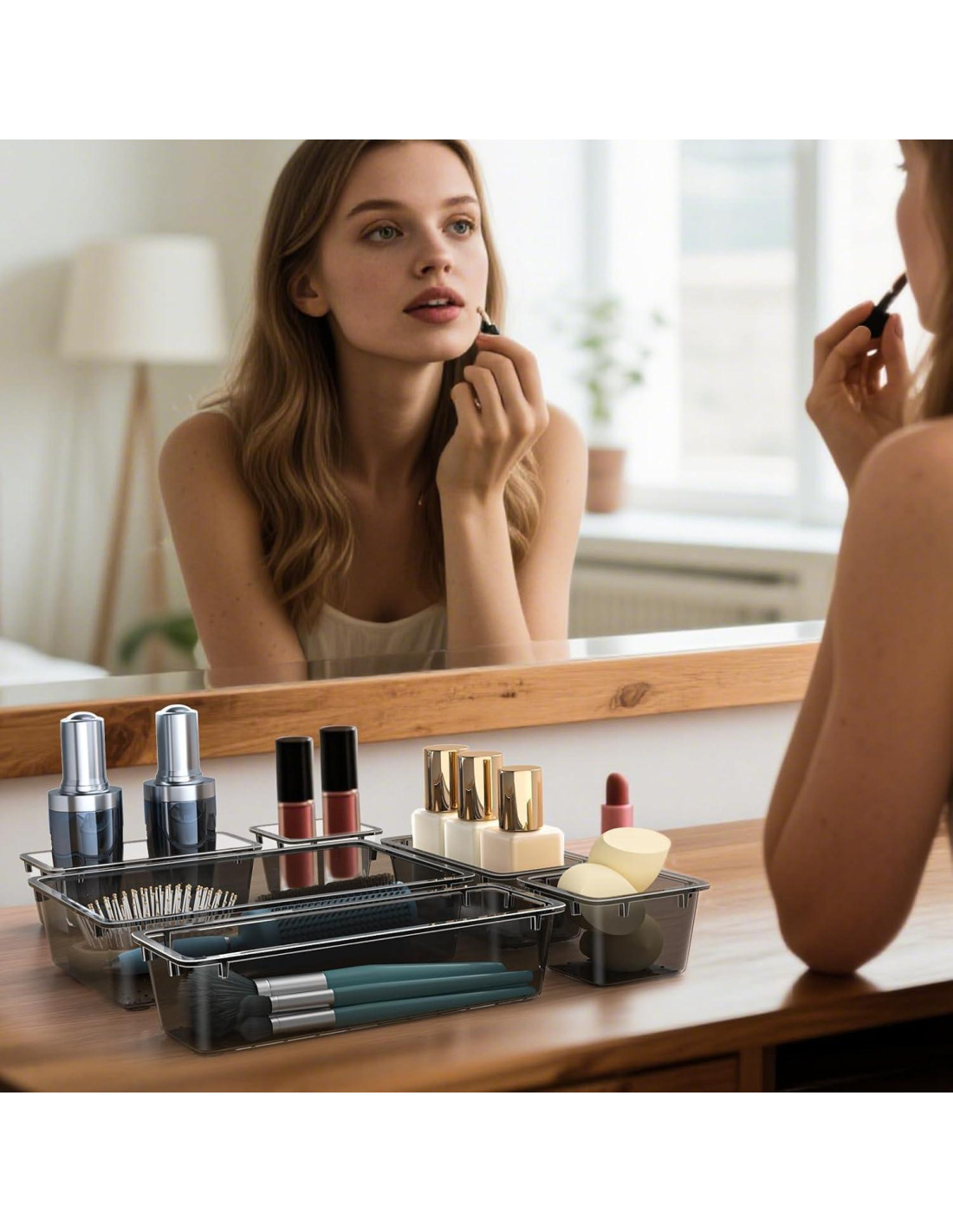- 4. Almacenamiento Versátil: Estas bandejas divisorias para cajones son perfectas para organizar artículos. Ideales para organizar cosméticos, joyería, accesorios para el cabello, suministros de oficina, suministros de manualidades, vajilla, etc. para una variedad de cajones, como cajones de dormitorio/baño/cocina/oficina/sala de manualidades.