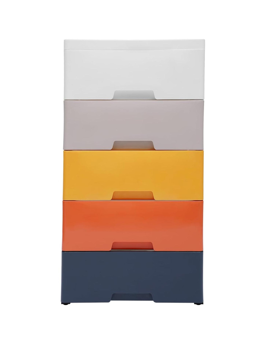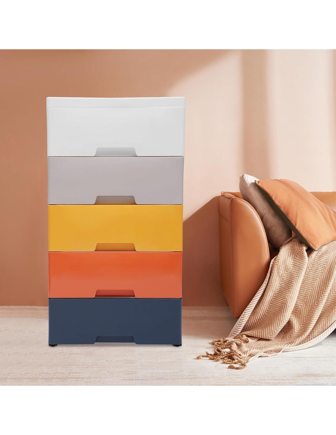 - Asistente de Almacenamiento: Los cajones de almacenamiento de plástico para ropa tienen 5 cajones con un gran espacio interno y una placa superior reforzada con una ranura antideslizante para almacenamiento, ayudándote a resolver efectivamente el problema del desorden y lograr una gestión refinada de la vida en el hogar.