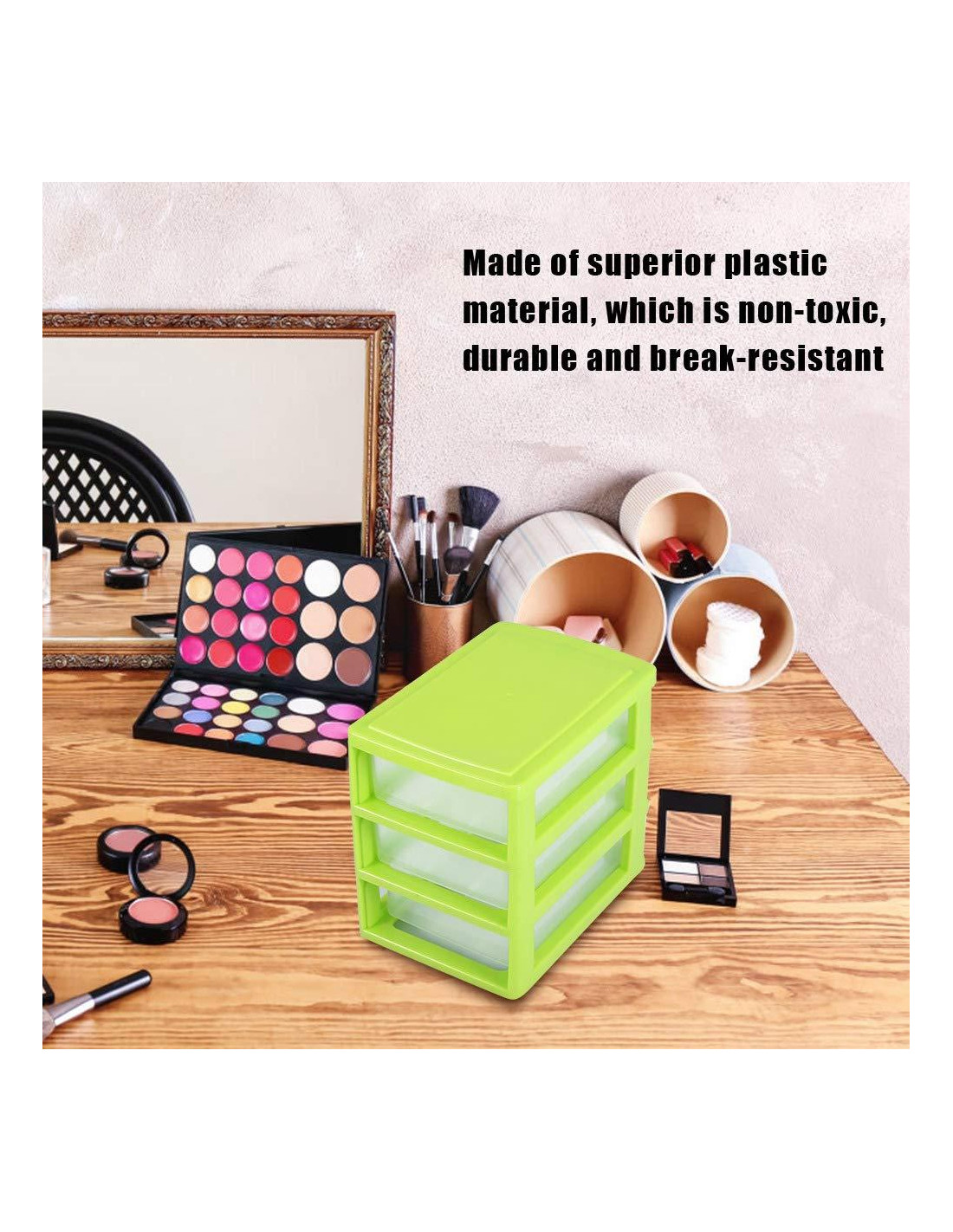 - Diseño multifuncional: El cajón es desmontable, puedes quitar una/dos capas para cambiar la capacidad. Se puede colocar en el dormitorio, cocina, sala de estar, baño, etc. Perfecto para almacenar algunos artículos pequeños. Adecuado para almacenar maquillaje, cuentas, dulces, tazas de té u otros pequeños accesorios.