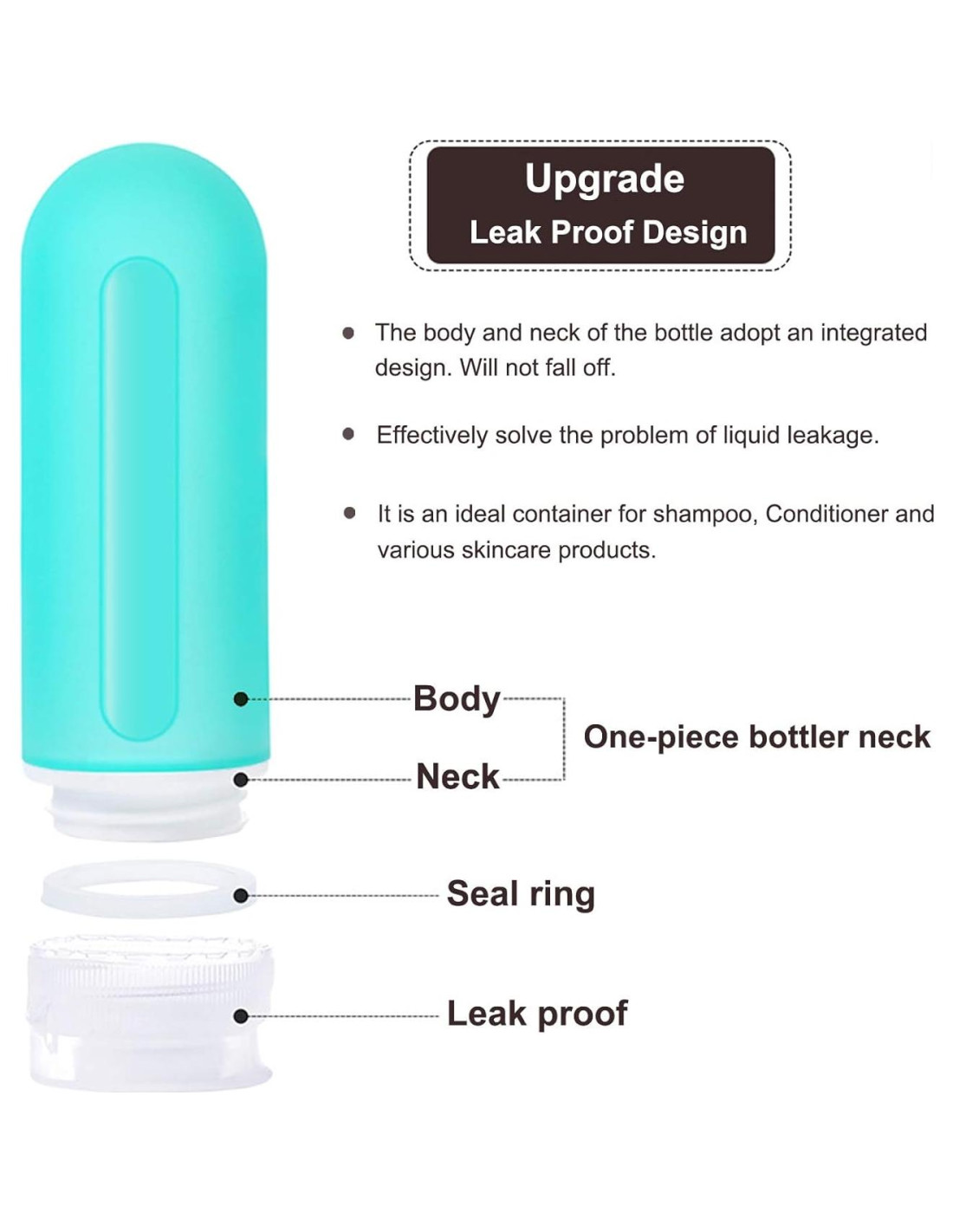- Botellas de viaje diseño a prueba de fugas de 3 capas que previene fugas o derrames de líquidos, ofrece protección a tu equipaje y ropa. ( Viene con 4 botellas de viaje + 2 tarros + 1 hoja de etiquetas + 1 bolsa ) Múltiples botellas te permiten llevar diferentes productos de belleza y artículos de tocador según tu necesidad.