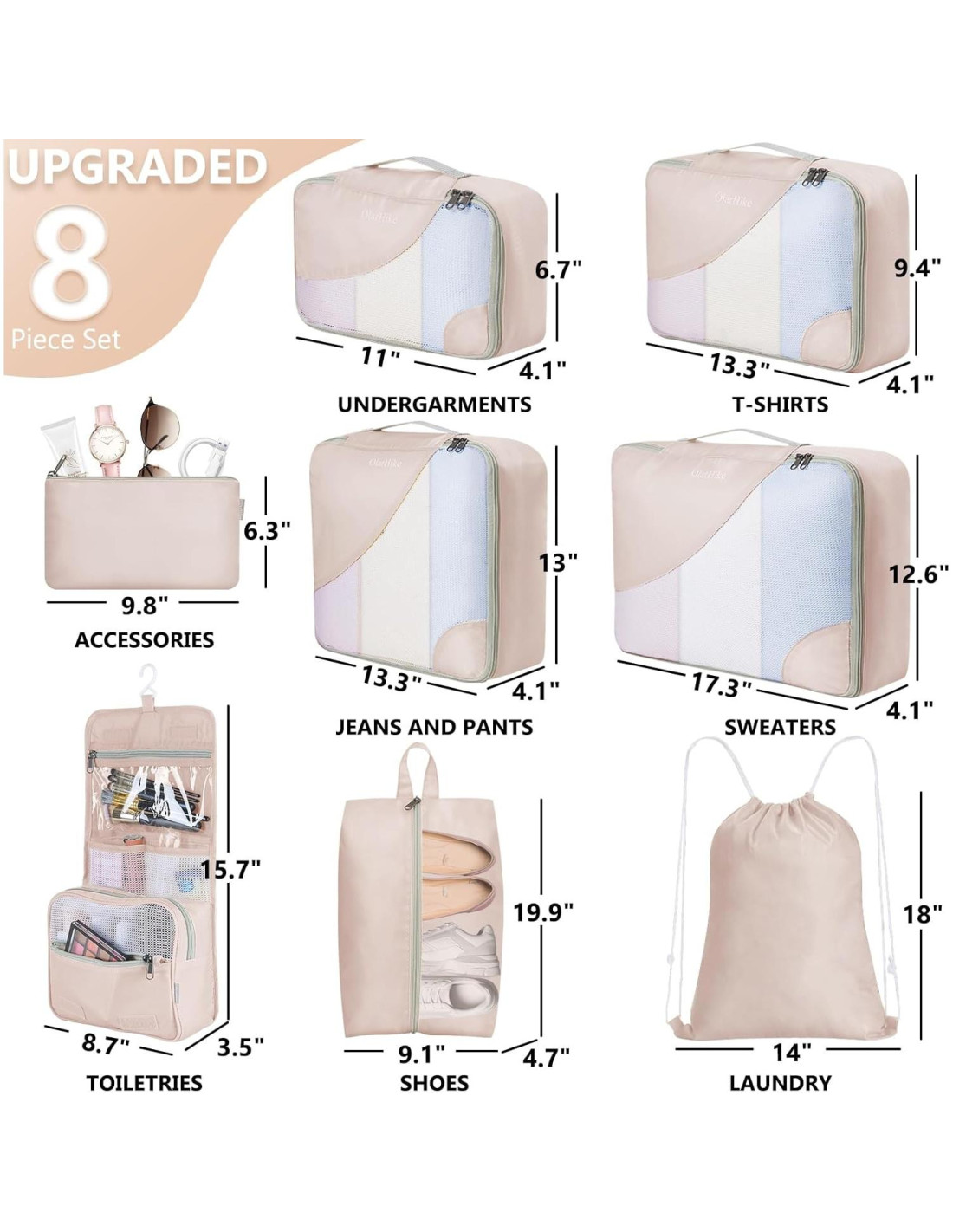 - Organizadores de Viaje Adaptables: No importa qué tipo de equipaje uses, nuestros cubos de empaque se ajustan perfectamente, ayudándote a mantenerte organizado. Mantén tu ropa, artículos de tocador y accesorios en orden, asegurando que todo sea fácil de encontrar y listo para usar cuando lo necesites