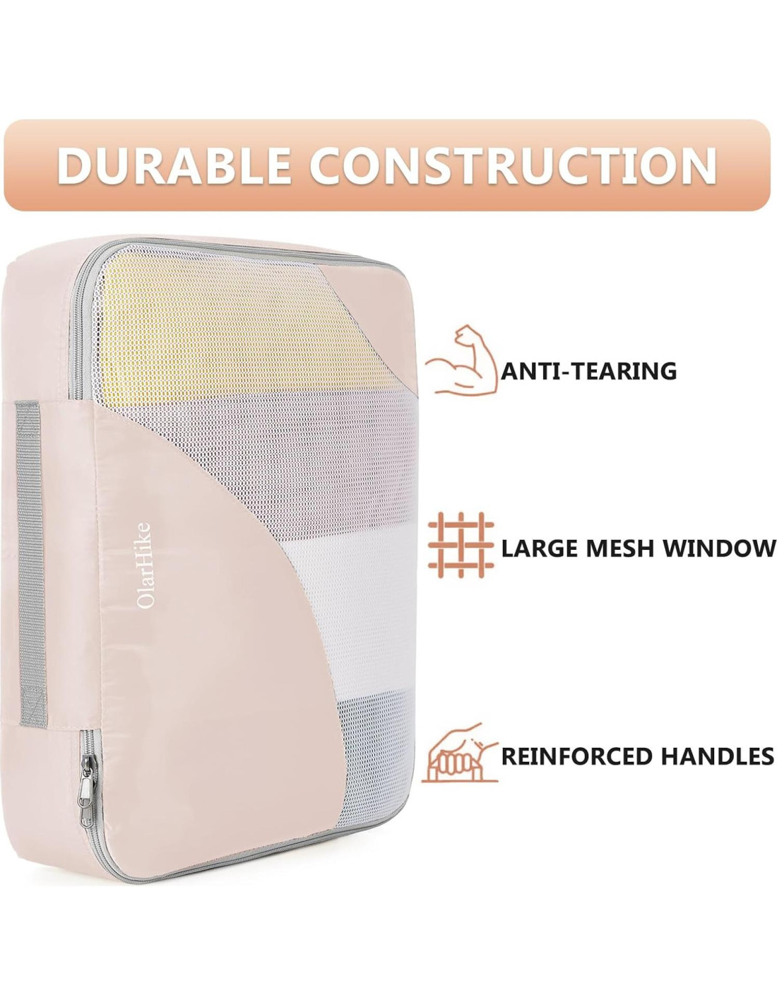 - Construido para Durar: Nuestros cubos de empaque están hechos de tela de poliéster de alta calidad, elegida por su excepcional durabilidad. Diseñados para soportar las exigencias del viaje, estos cubos cuentan con costuras reforzadas y cremalleras robustas, proporcionando protección confiable para tus pertenencias viaje tras viaje