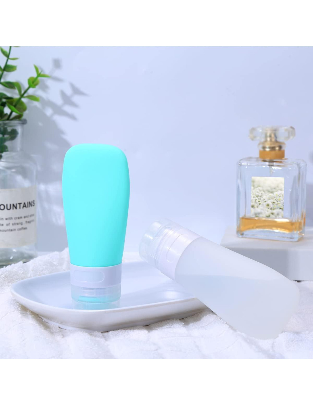- Juego de Botellas de Viaje Portátiles--El juego de botellas de silicona de 3oz en verde y blanco de 2 piezas viene con una bolsa de transporte transparente, que es adecuada para llenar cosméticos líquidos o artículos de tocador en viajes.