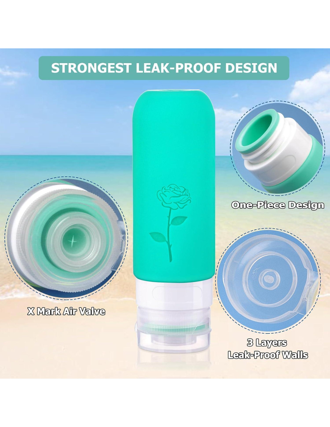 - Diseño a Prueba de Fugas: Estos contenedores de viaje recargables para artículos de tocador tienen tapas a prueba de fugas y herméticas que previenen derrames. Serán esenciales para viajar.