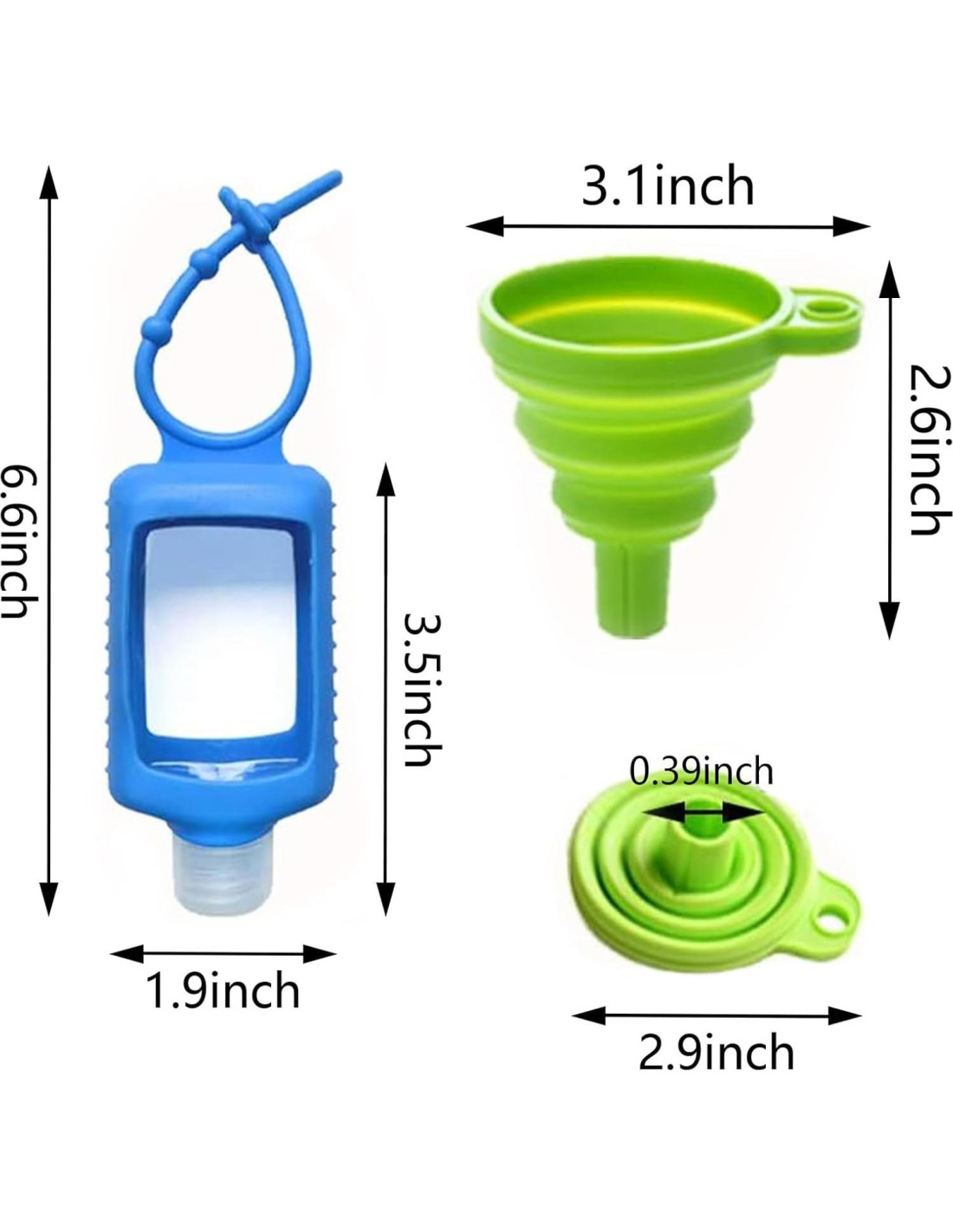 - [Botella Refillable con Manga de Silicona] : El paquete incluye 6 botellas vacías de 60ml con 6 soportes de color ALEATORIO y un embudo plegable. (Consejo: El color de las mangas de silicona es aleatorio. Puede que recibas los mismos colores de las mangas de silicona). Botellas de viaje aprobadas por la TSA, incoloras e inodoras, recargables y reutilizables.